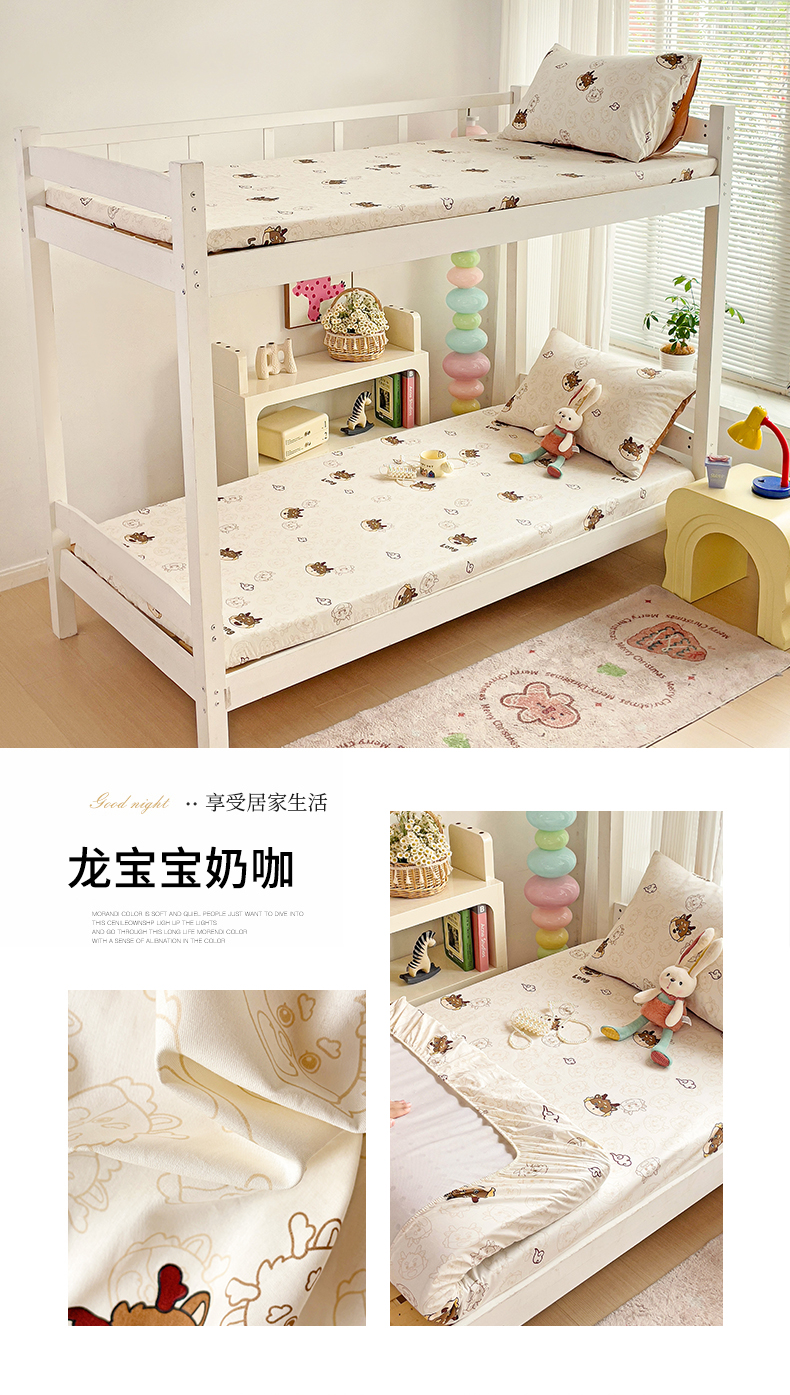 • 91家纺网 家纺一手货源 找家纺 名兮家居 2024新款学生床上下铺全棉床笠 龙宝宝奶咖