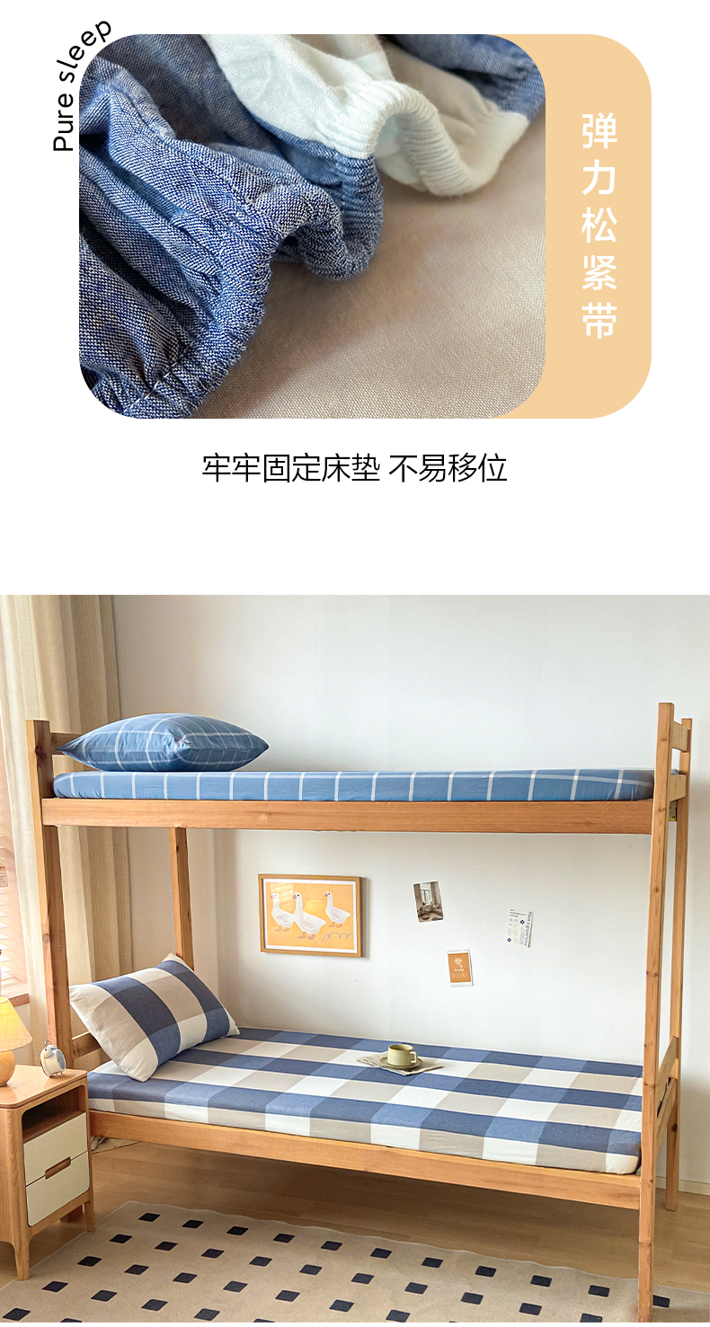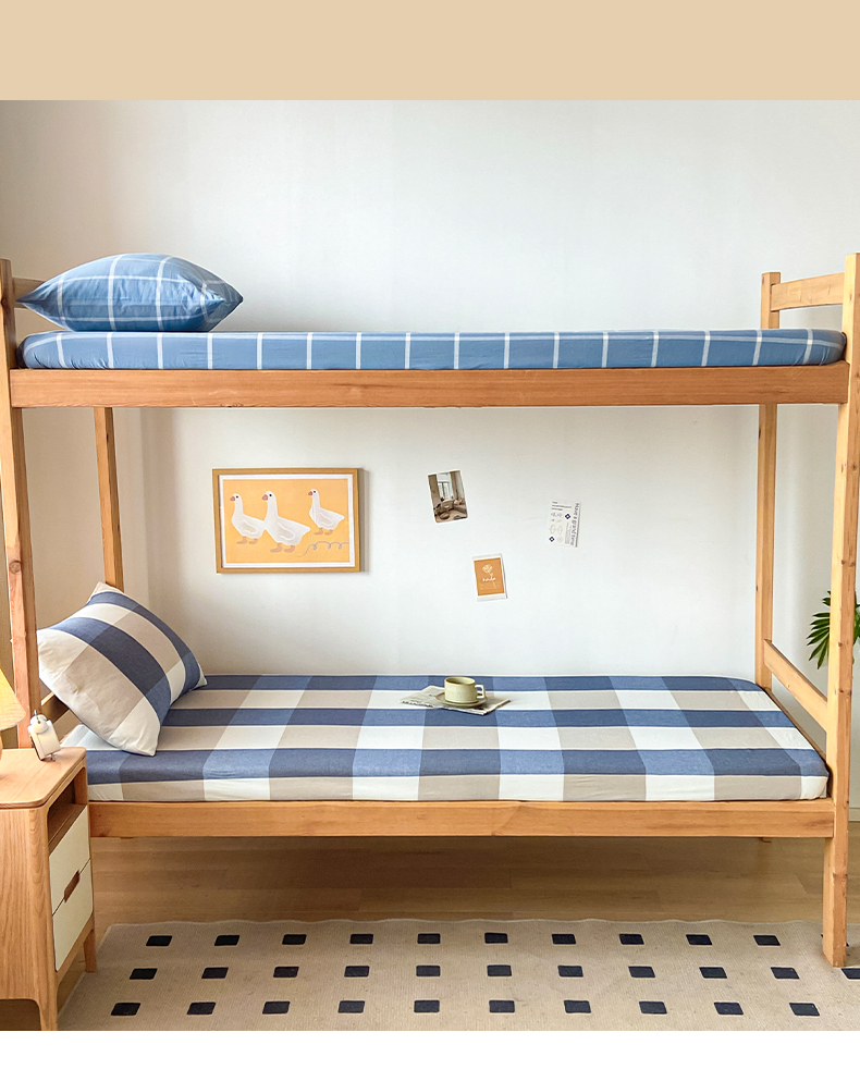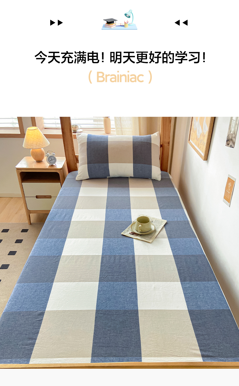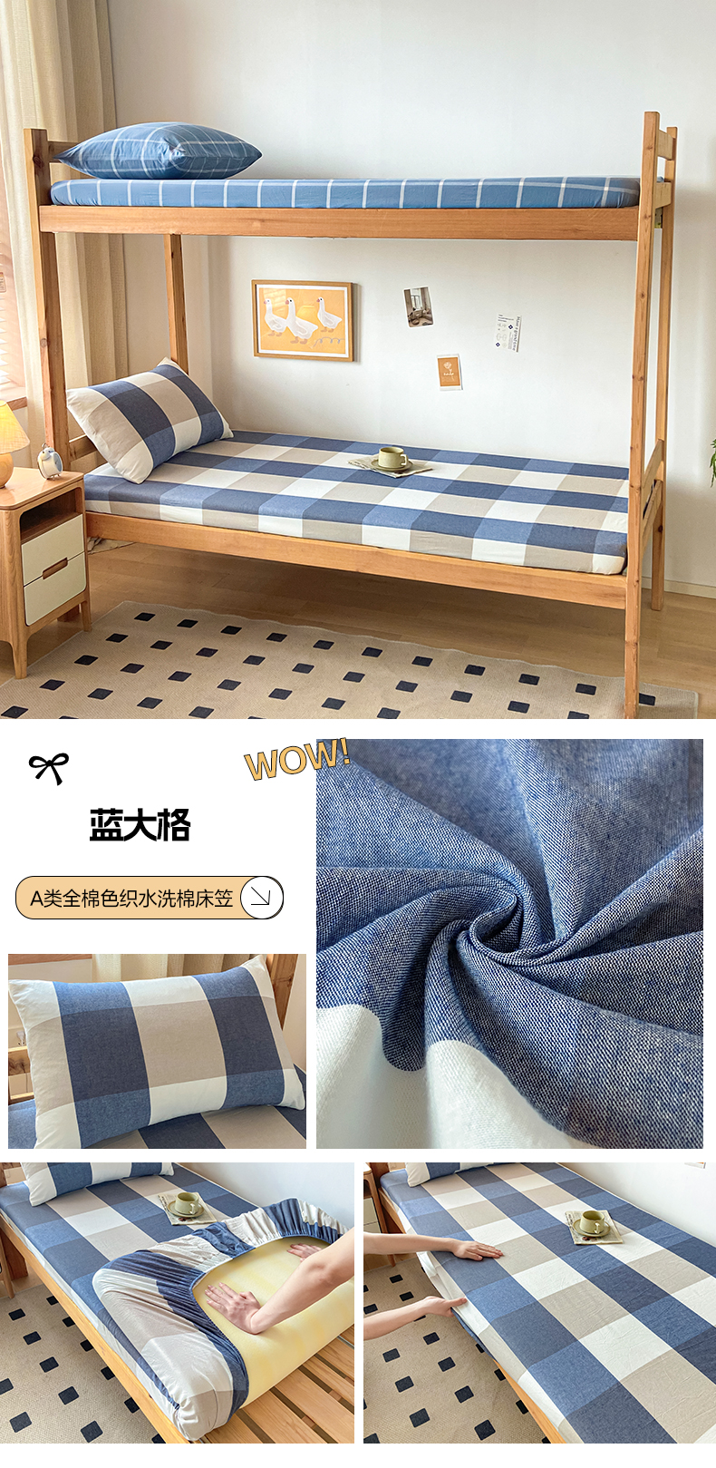 卡伦家纺 2025新款全棉色织水洗棉单层宿舍学生床笠 蓝大格