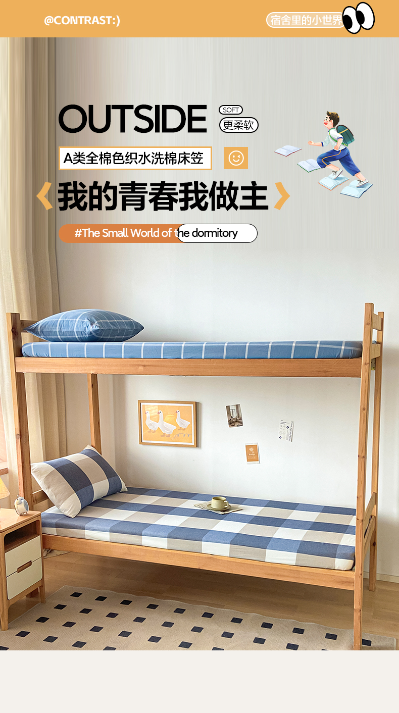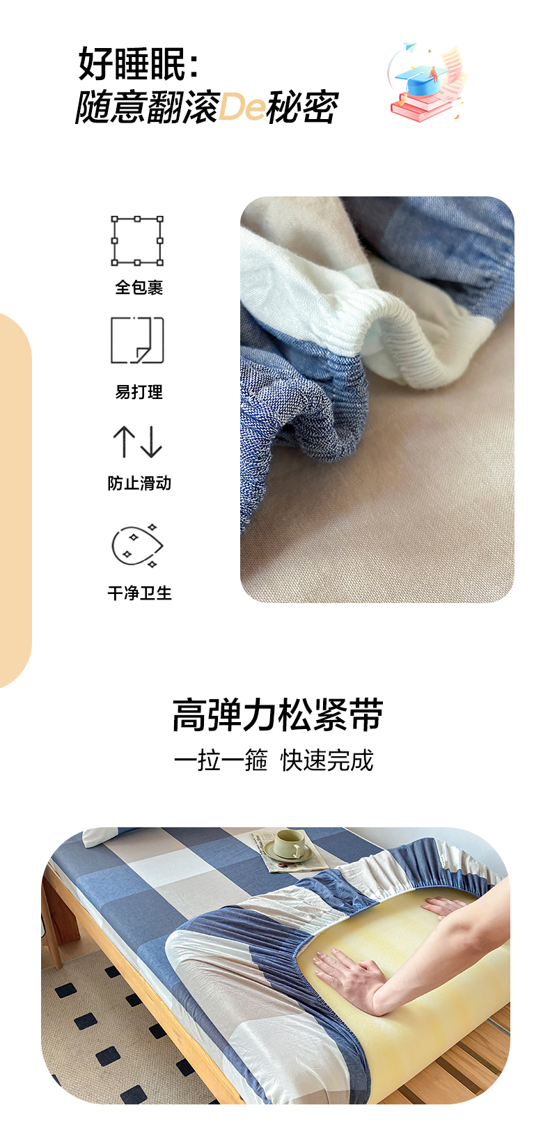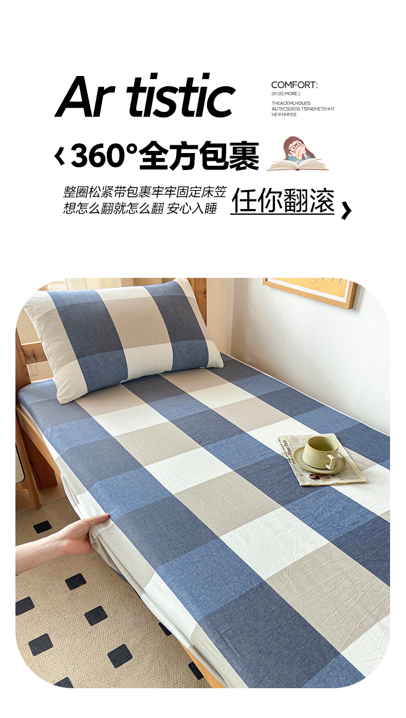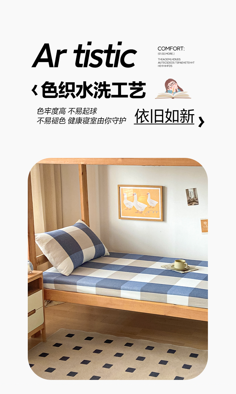 卡伦家纺 2025新款全棉色织水洗棉单层宿舍学生床笠 蓝大格