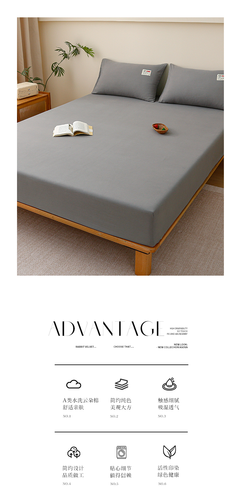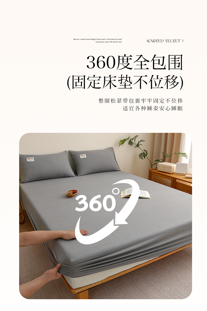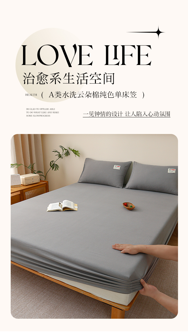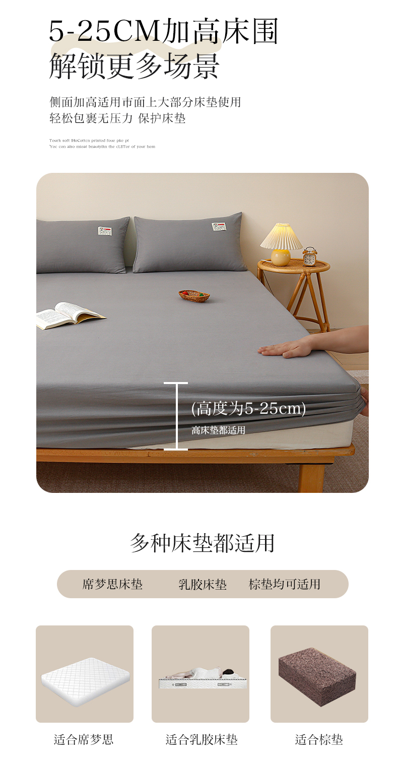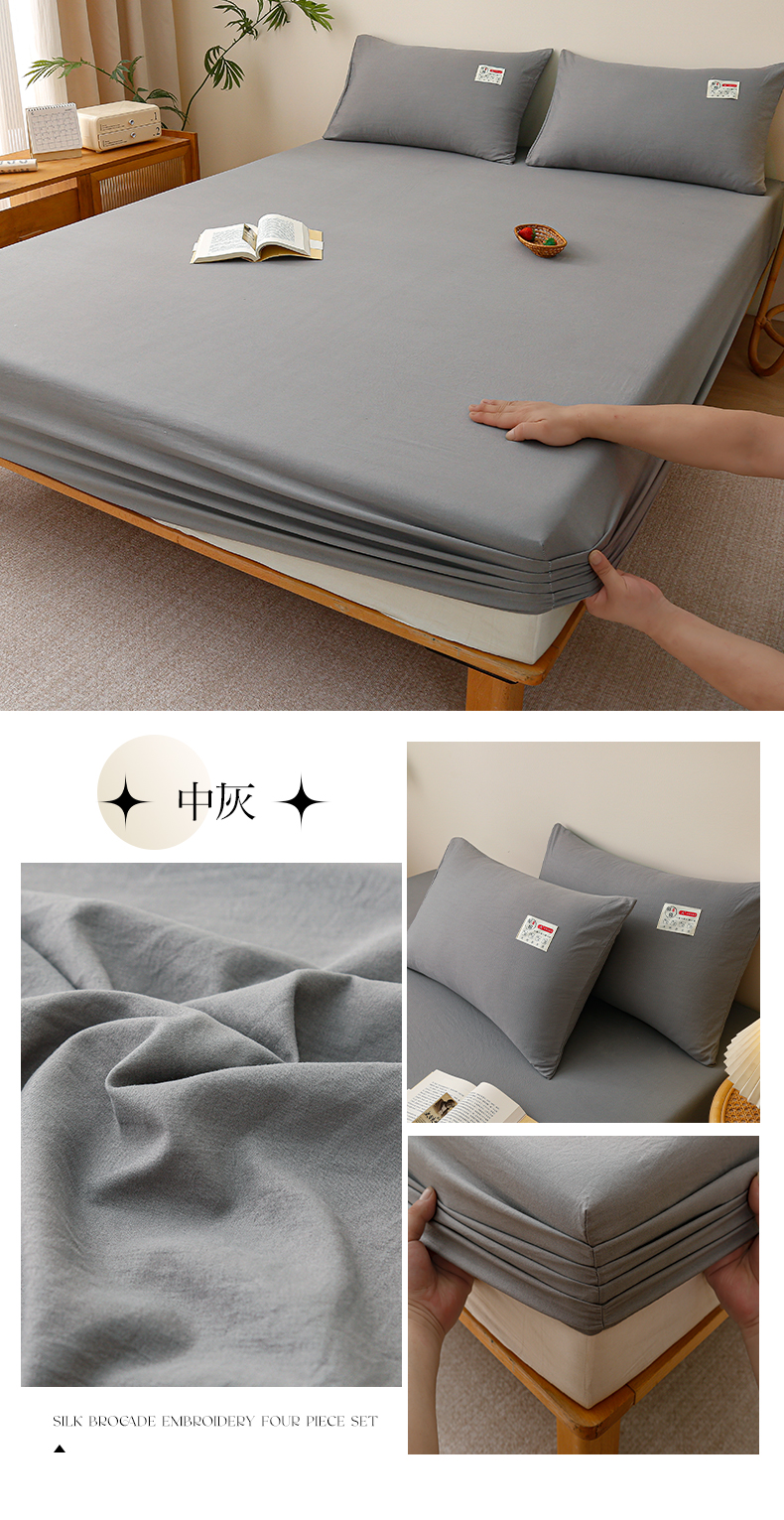 商品名称:2024新款A类云朵棉纯色床笠 中灰