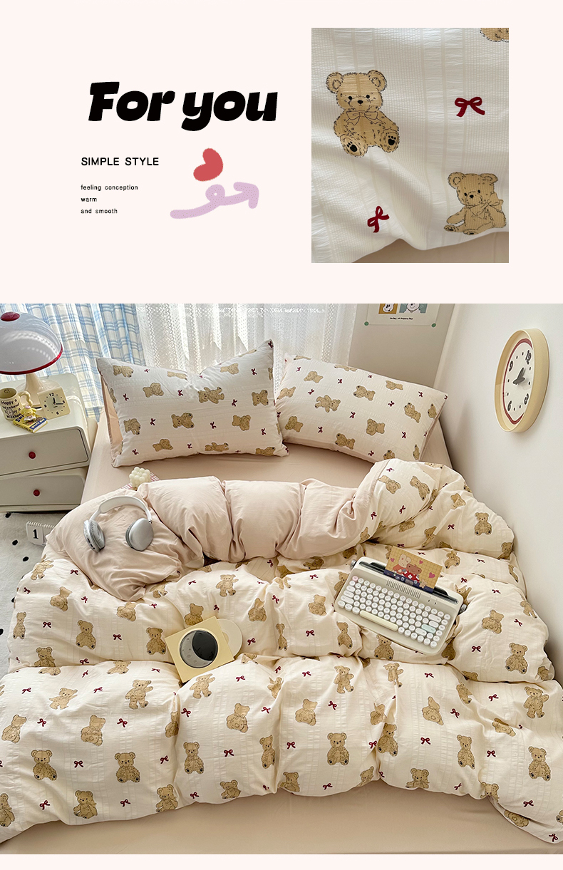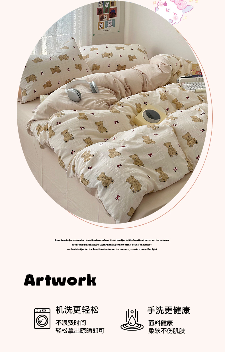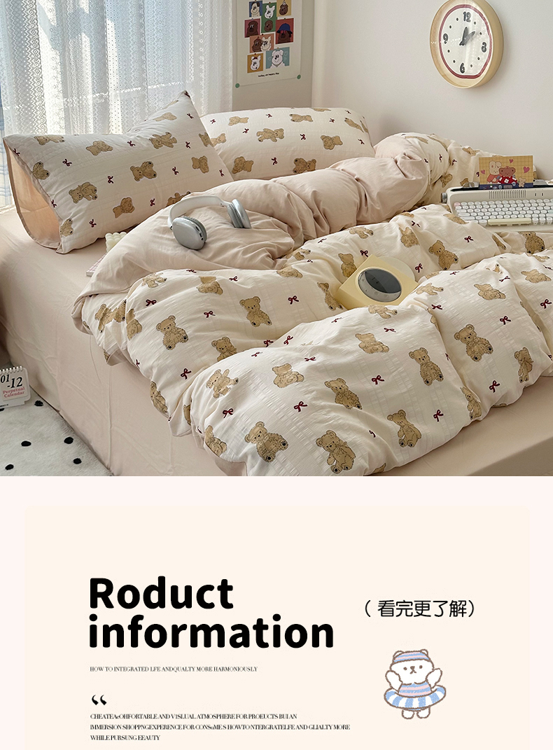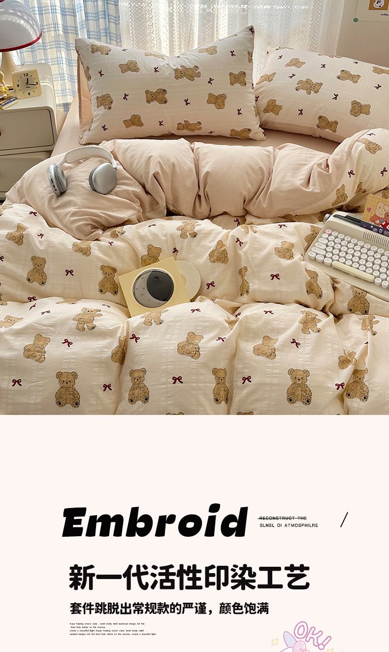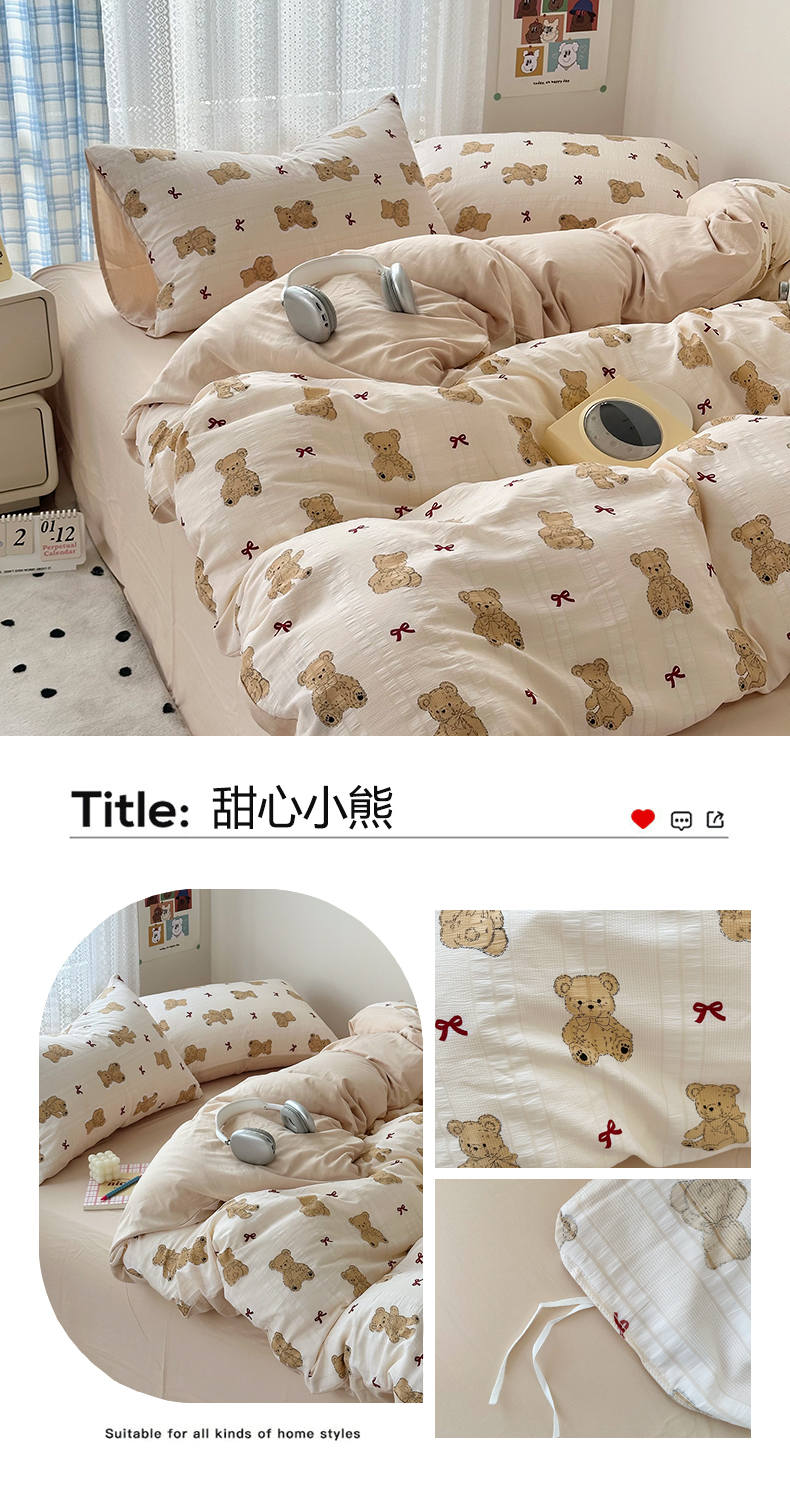 当前位置: 91家纺网 > 商品网购 > 床品套件 > 四件套 > 全棉普通四件套 > 希丞家居 2024新款小清新高克重提花水洗棉四件套(提供买家秀) 甜心小熊