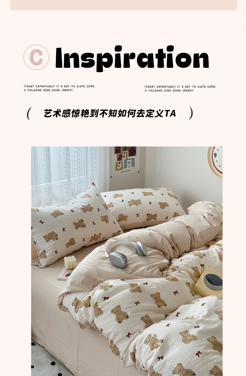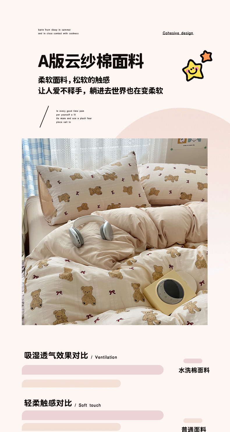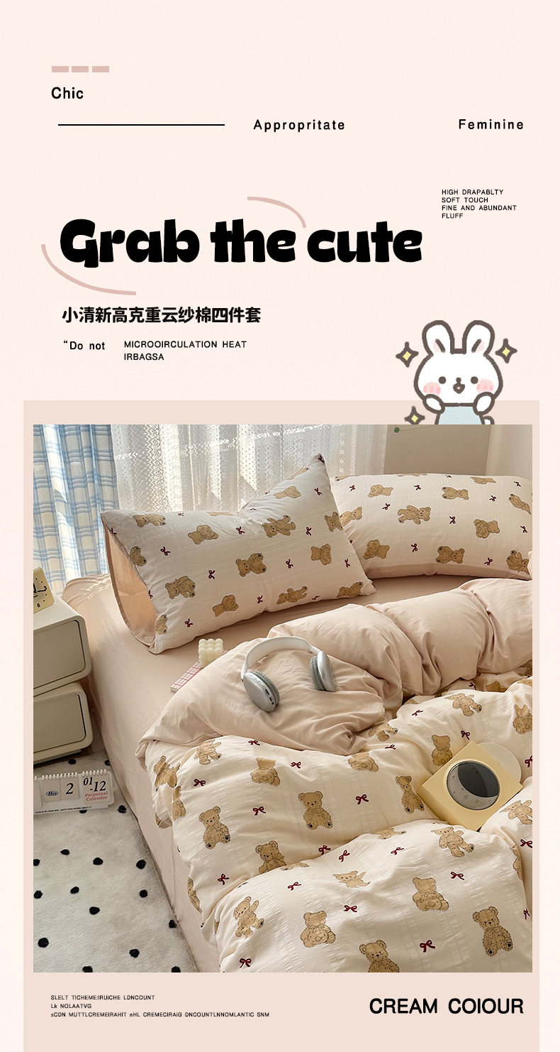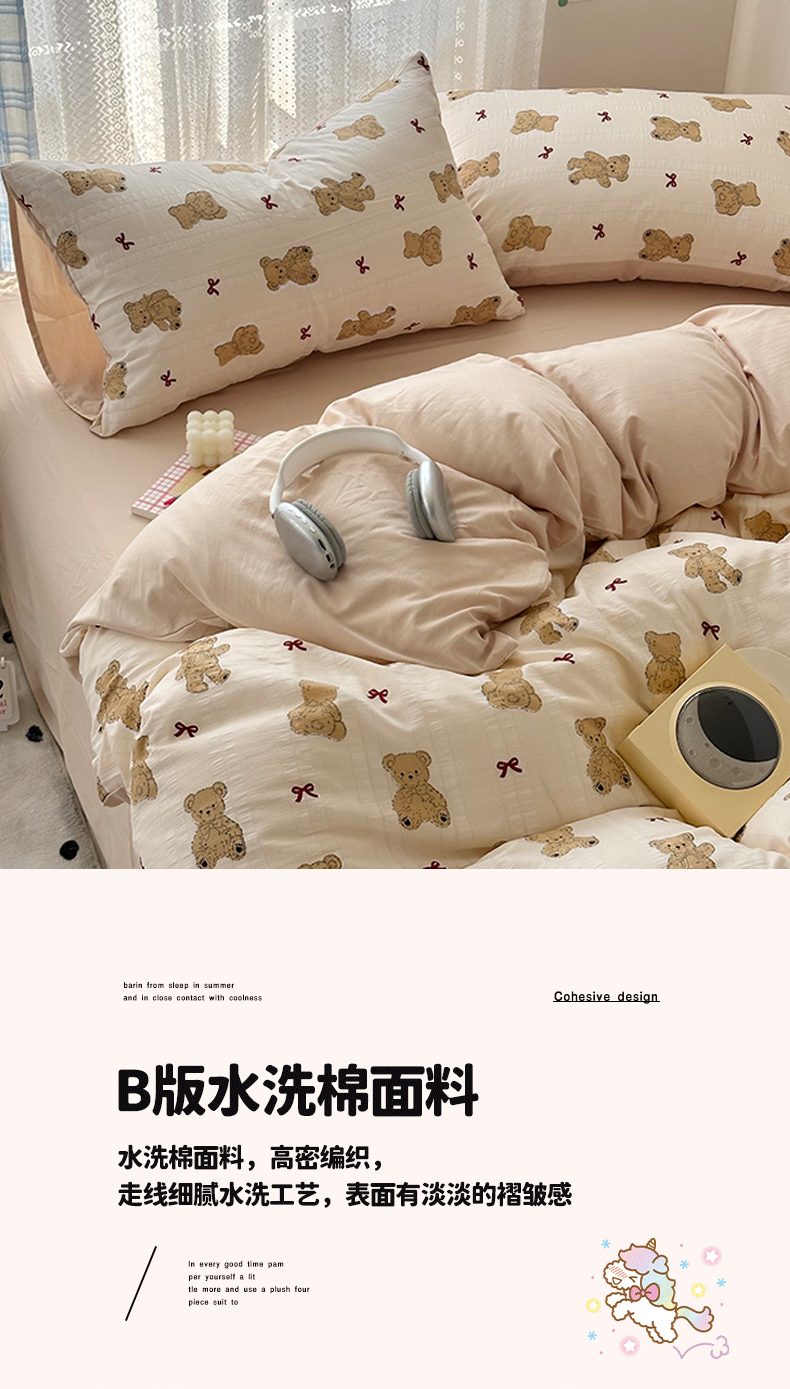 当前位置: 91家纺网 > 商品网购 > 床品套件 > 四件套 > 全棉普通四件套 > 希丞家居 2024新款小清新高克重提花水洗棉四件套(提供买家秀) 甜心小熊