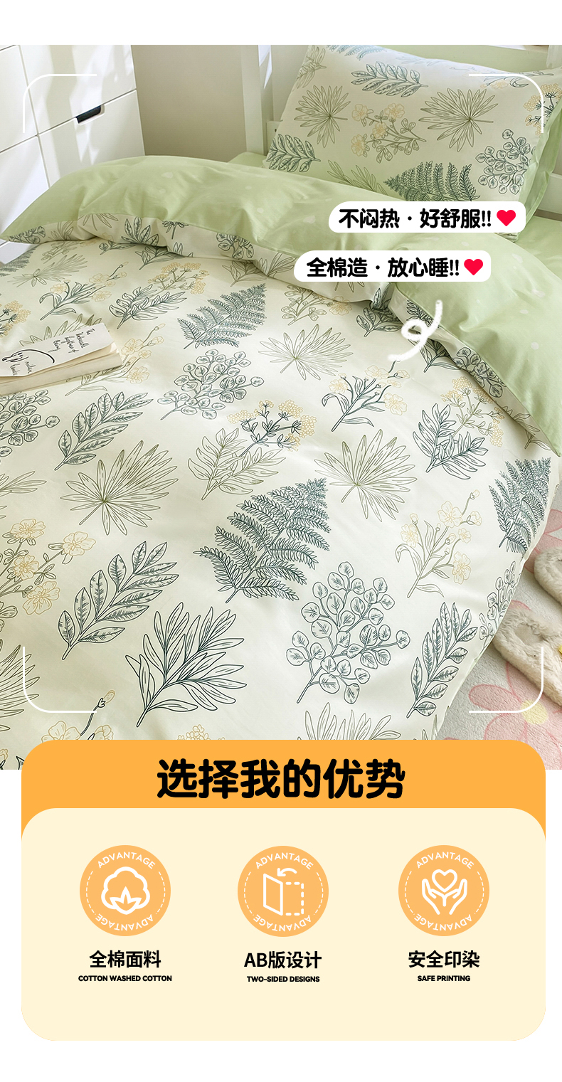 商品名称:本制 2024新款学生季全棉印花三件套 香草