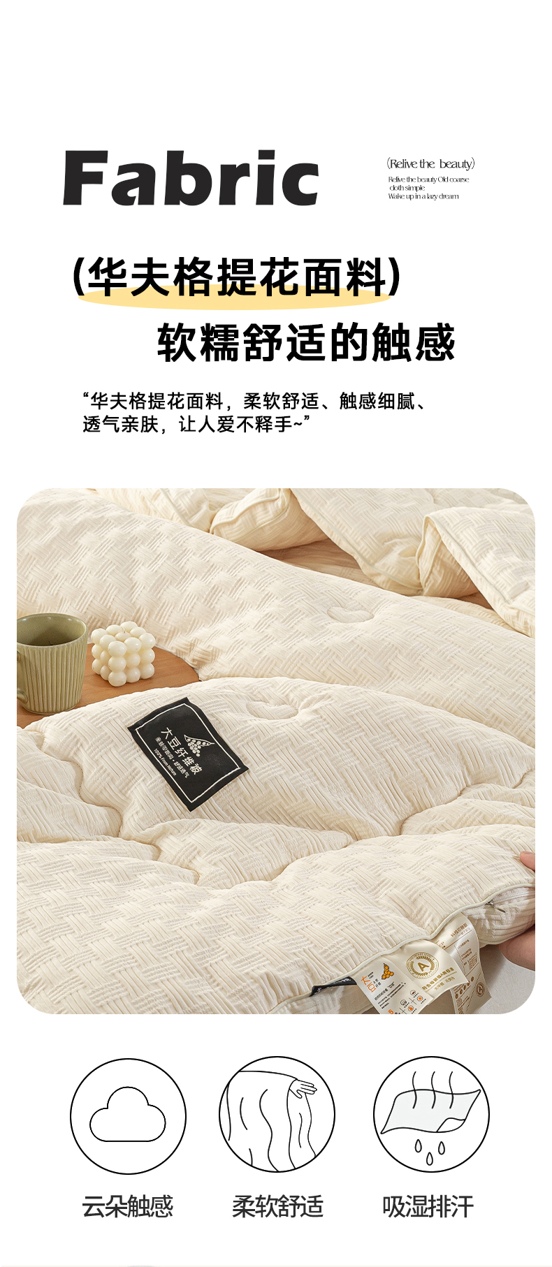 • 91家纺网 家纺一手货源 找家纺 玉相逢 2024新款直播华夫格大豆被冬被斜条包边订棉工艺水洗棉大豆被 奶白