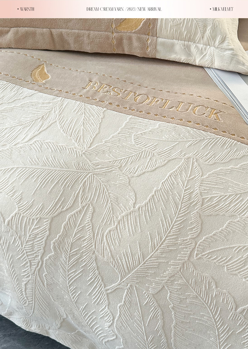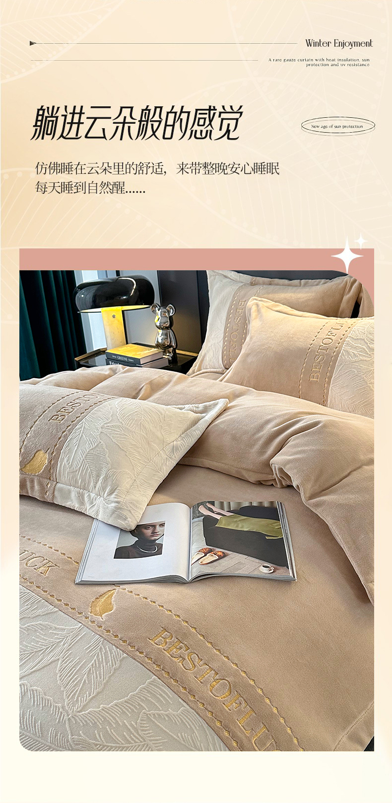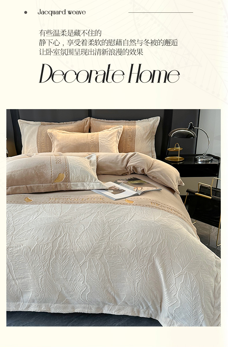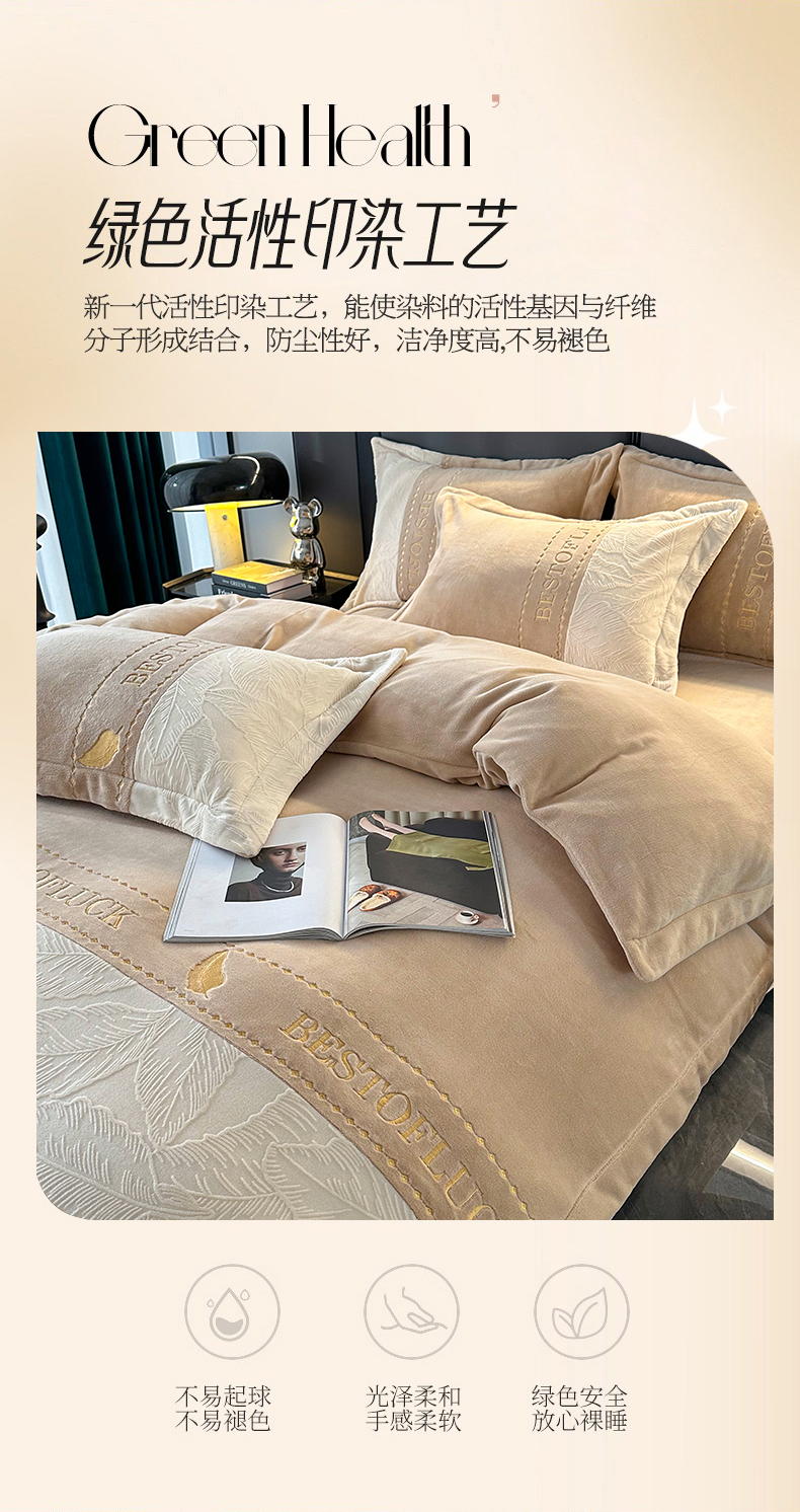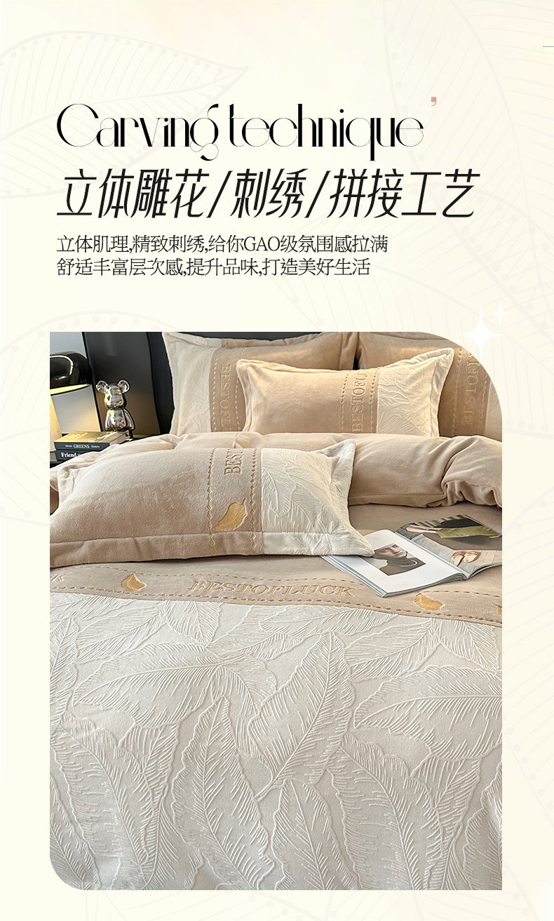 莱凯家纺 2025新款牛奶绒雕花刺绣四件套-叶屿 叶屿-咖