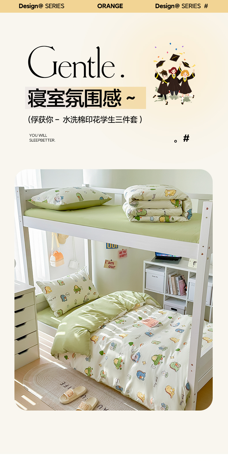 (总)2024新款水洗棉小清新印花学生三件套(床笠床套款),爱心熊,粉郁盛开,花间兔,花语,恐龙乐园,仙草,紫郁盛开