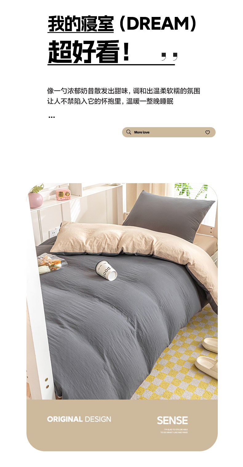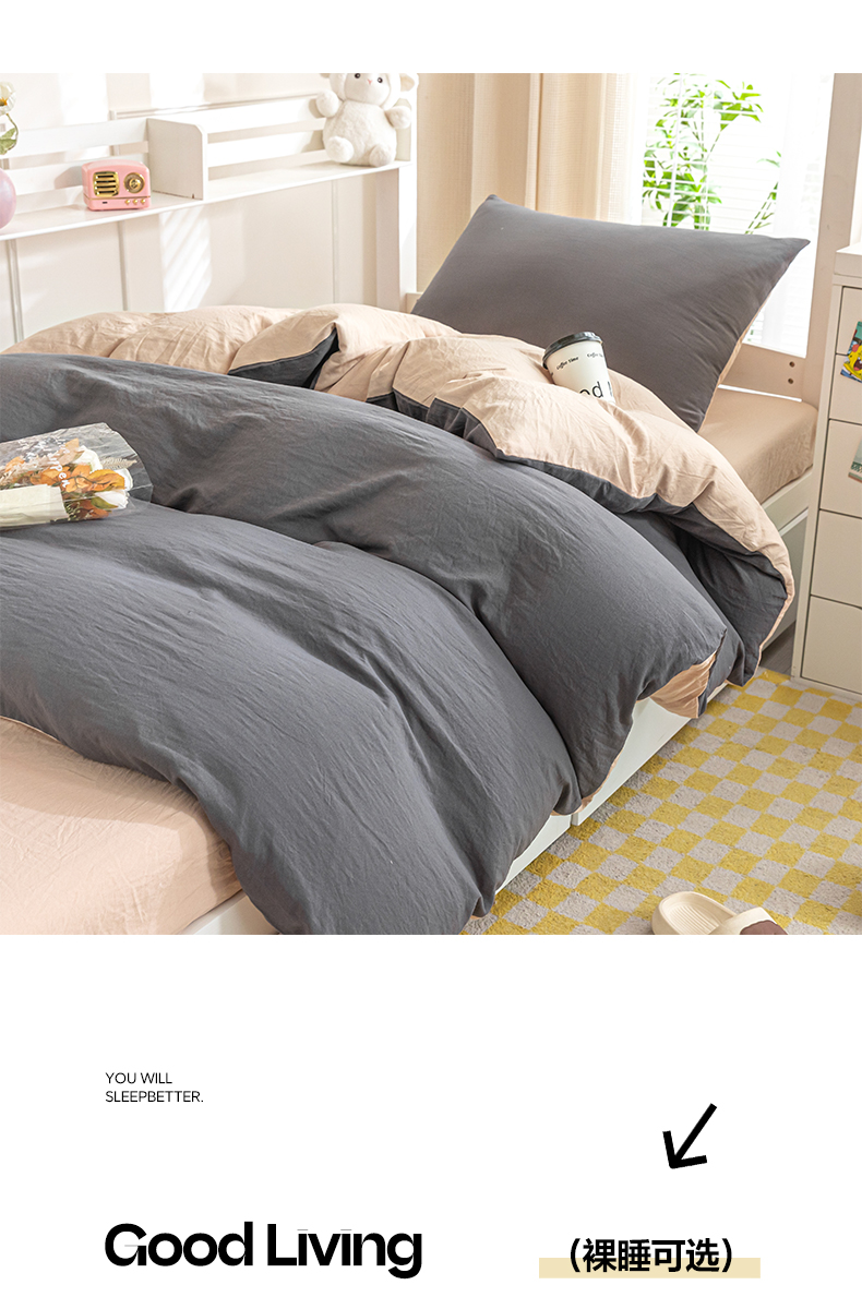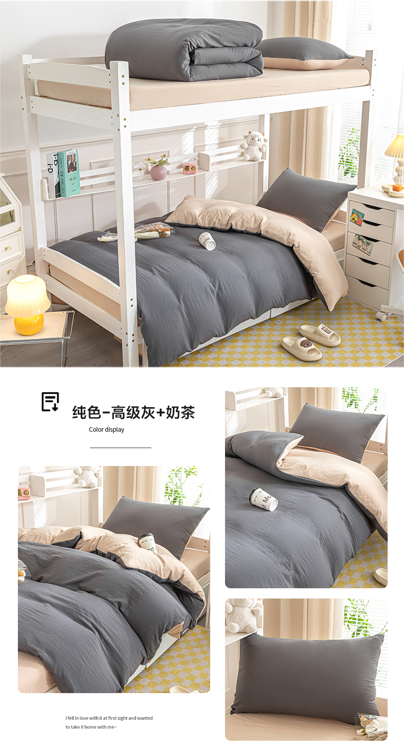 当前位置: 91家纺网 > 商品网购 > 床品套件 > 多件套 > 多件套 > 2024新款纯色双拼水洗棉学生三件套(床笠床套款) 纯色-高级灰+奶茶