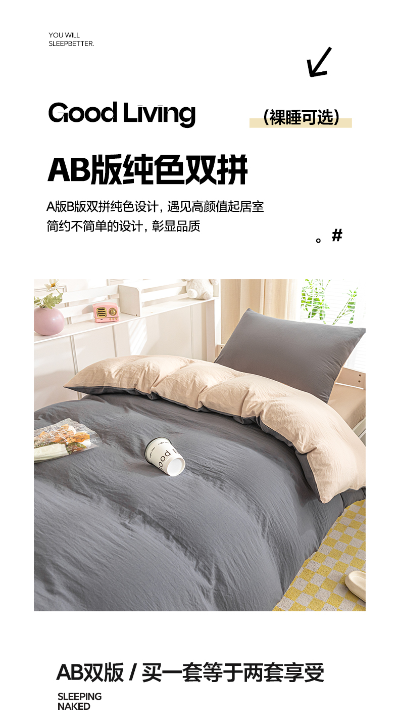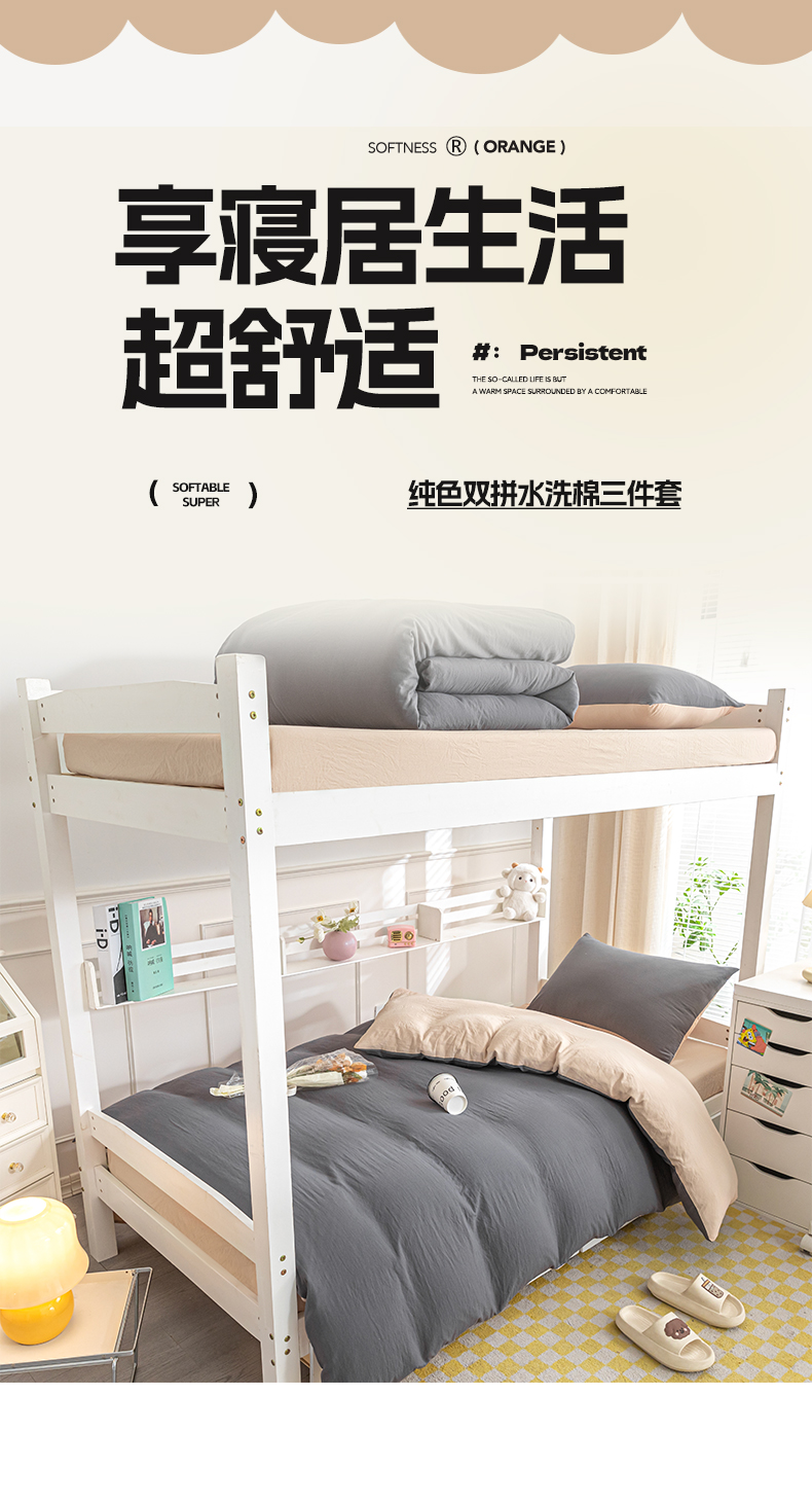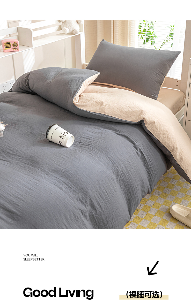 当前位置: 91家纺网 > 商品网购 > 床品套件 > 多件套 > 多件套 > 2024新款纯色双拼水洗棉学生三件套(床笠床套款) 纯色-高级灰+奶茶
