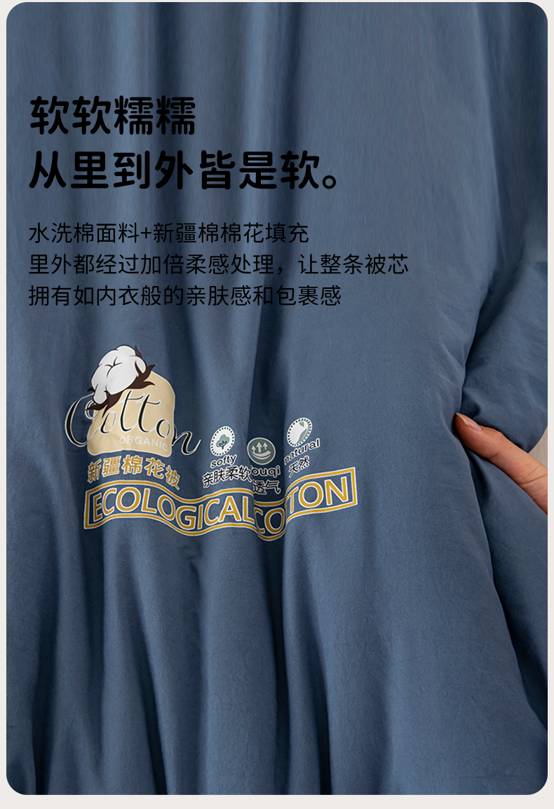 当前位置: 91家纺网 > 商品网购 > 被子 > 棉被 > 好宜家纺 2025新款水洗棉新疆棉花被芯拉链款二合一子母被冬被春秋被夏被学生宿舍被褥 单被子-靛蓝色
