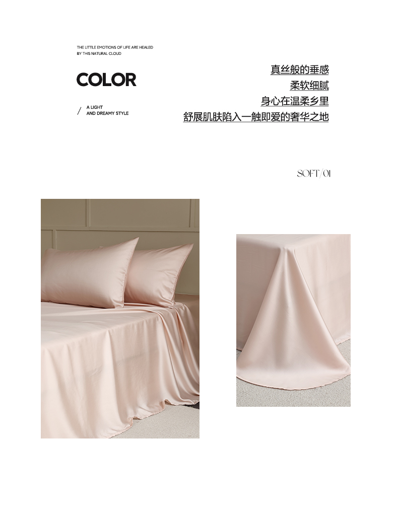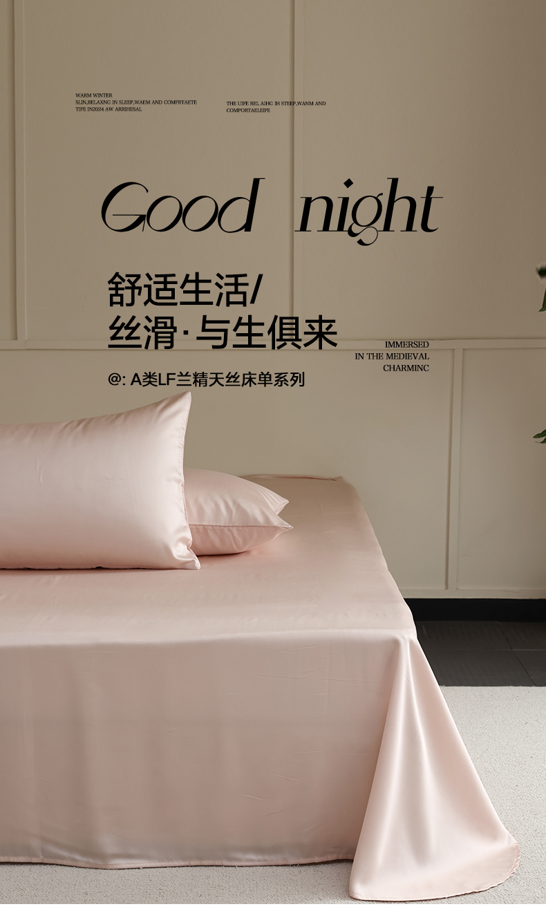 商品名称:轩和 2025新款A类LF60S兰精天丝单品床单 告白粉