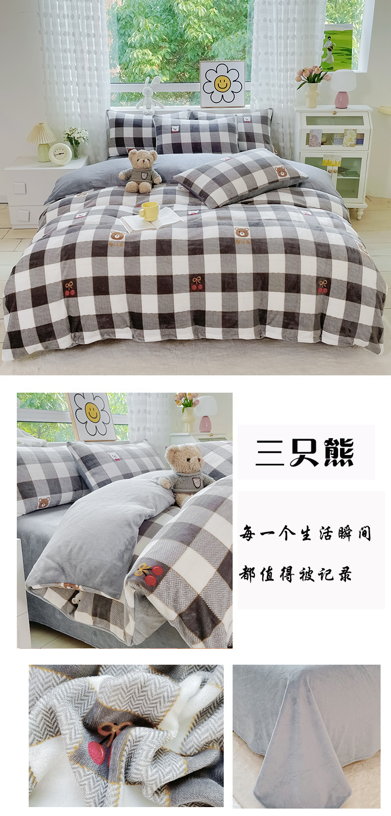 当前位置: 91家纺网 > 商品网购 > 床品套件 > 四件套 > 牛奶绒四件套 > 神州川 2024新款190小清新牛奶绒印花四件套卡通法莱绒保暖四件套跑量款 三只熊
