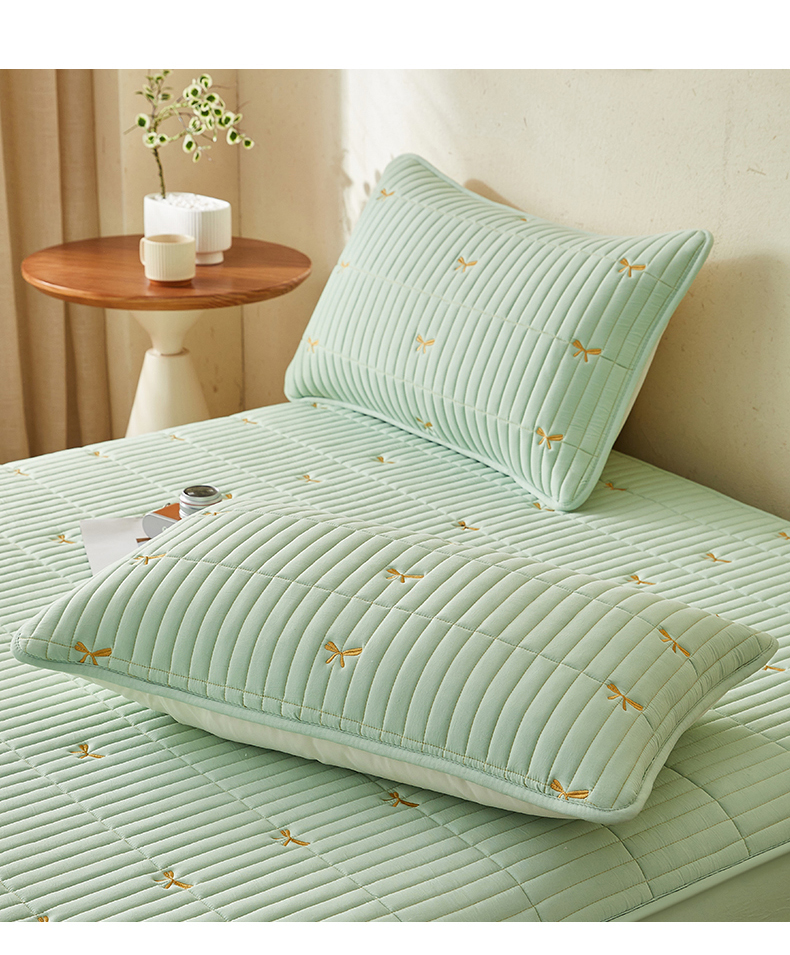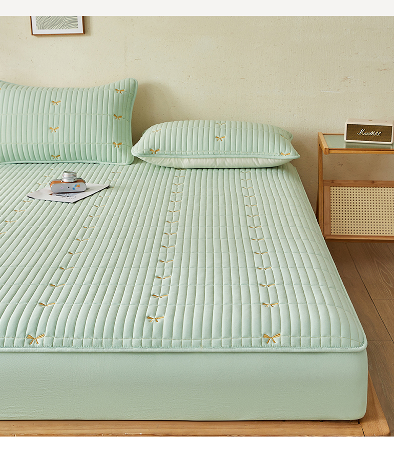 叠派家纺 2024新款水洗棉刺绣夹棉床笠 蝴蝶结-果绿