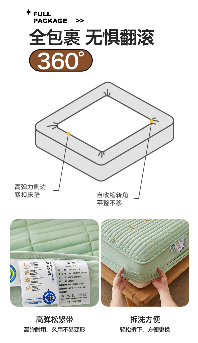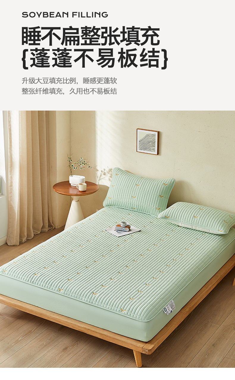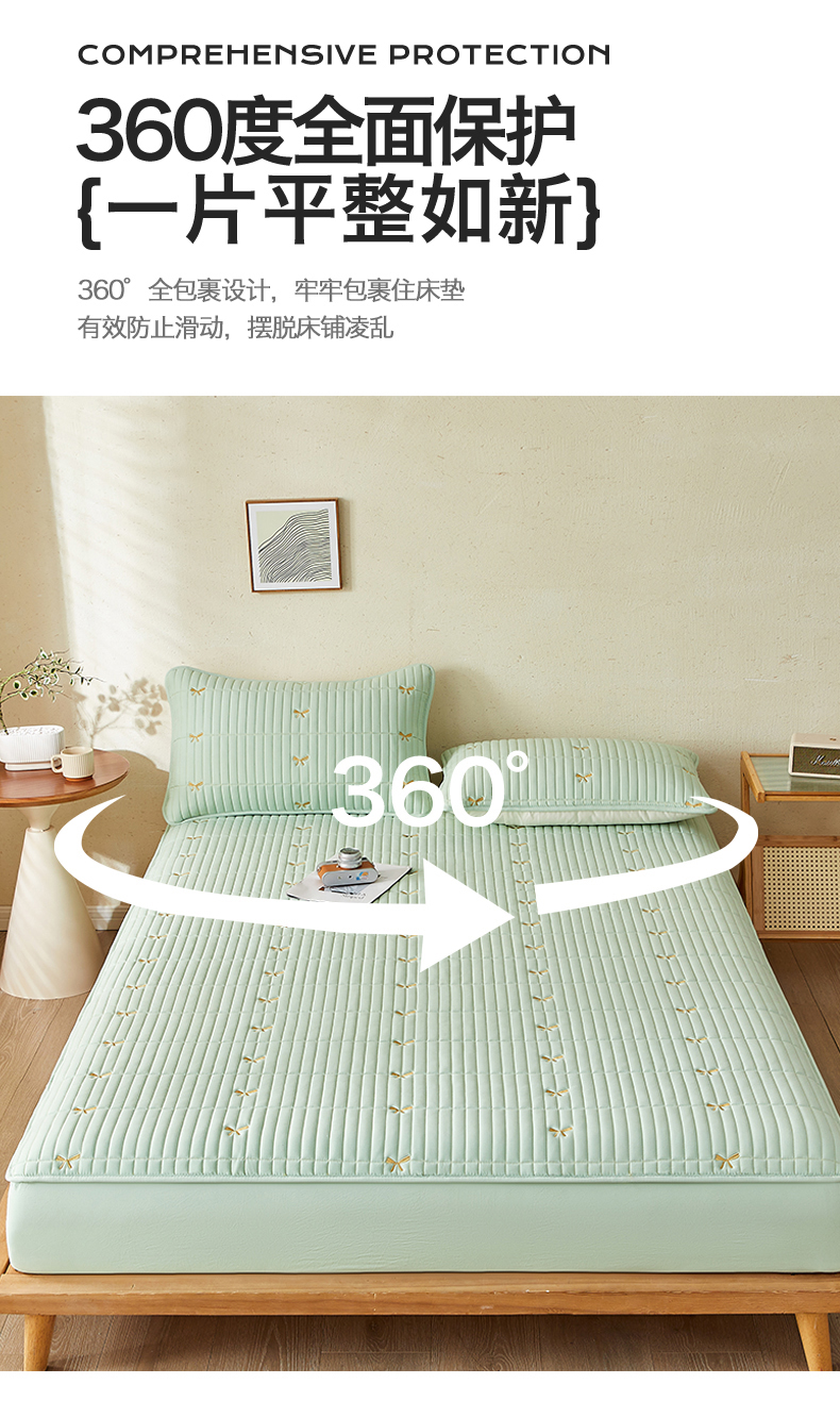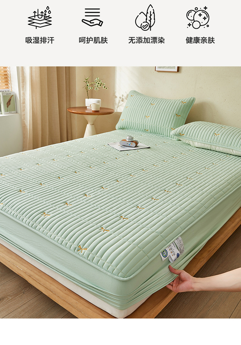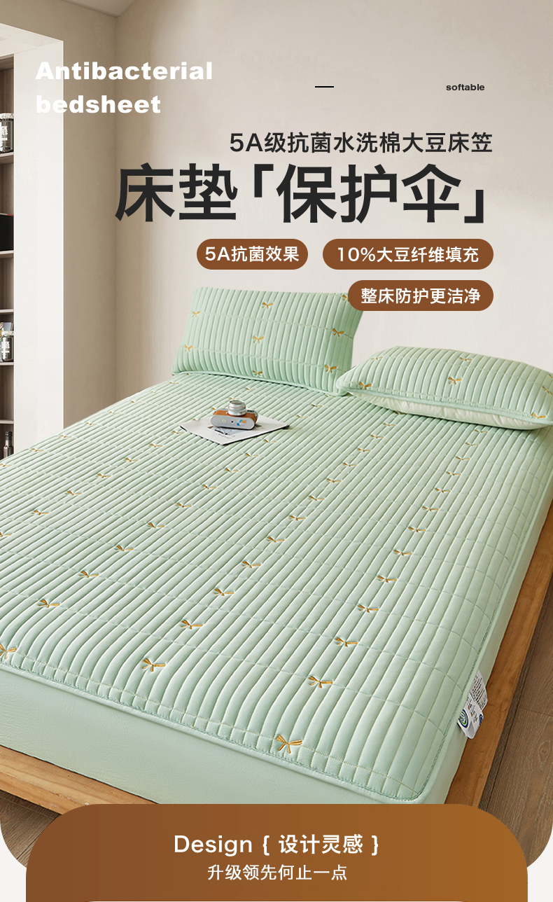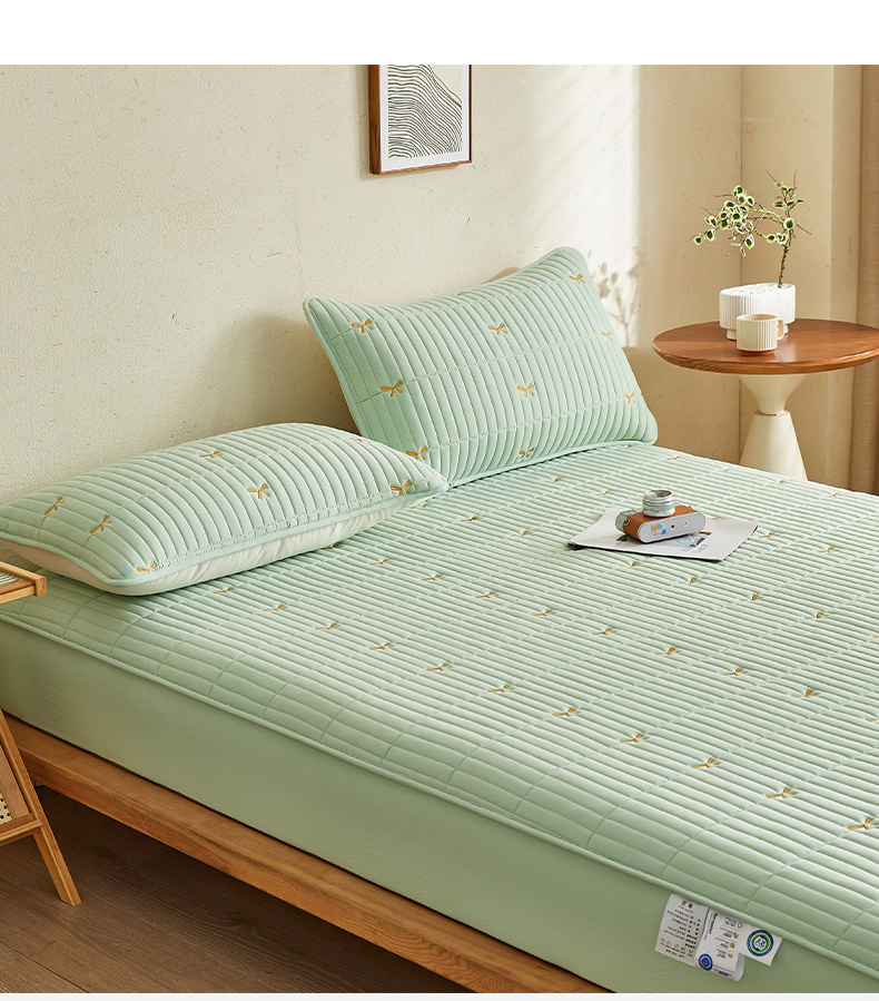 • 91家纺网 家纺一手货源 找家纺 叠派家纺 2024新款水洗棉刺绣夹棉床笠 蝴蝶结-果绿