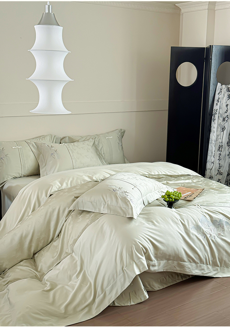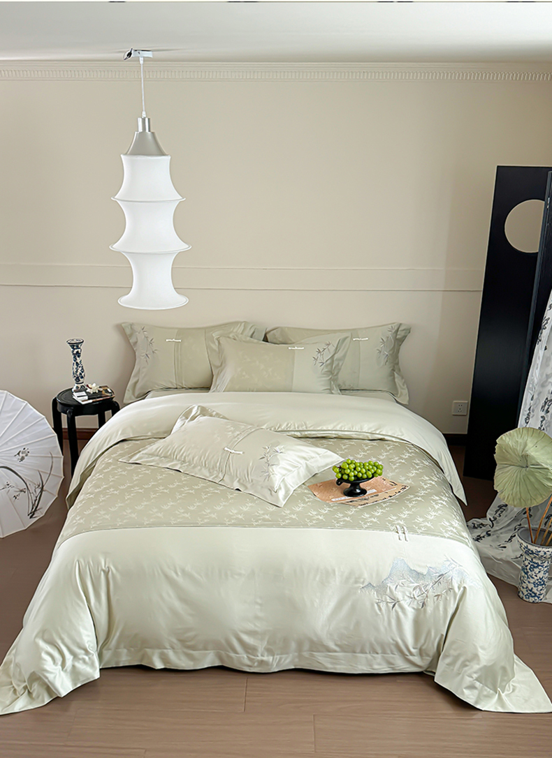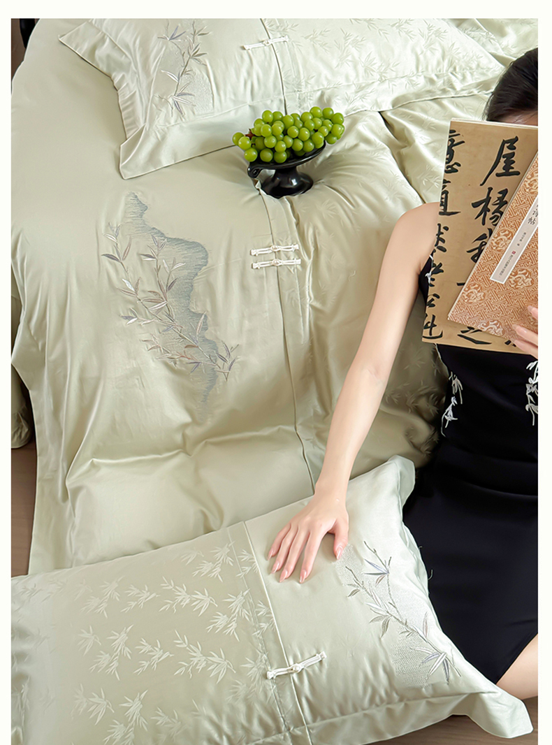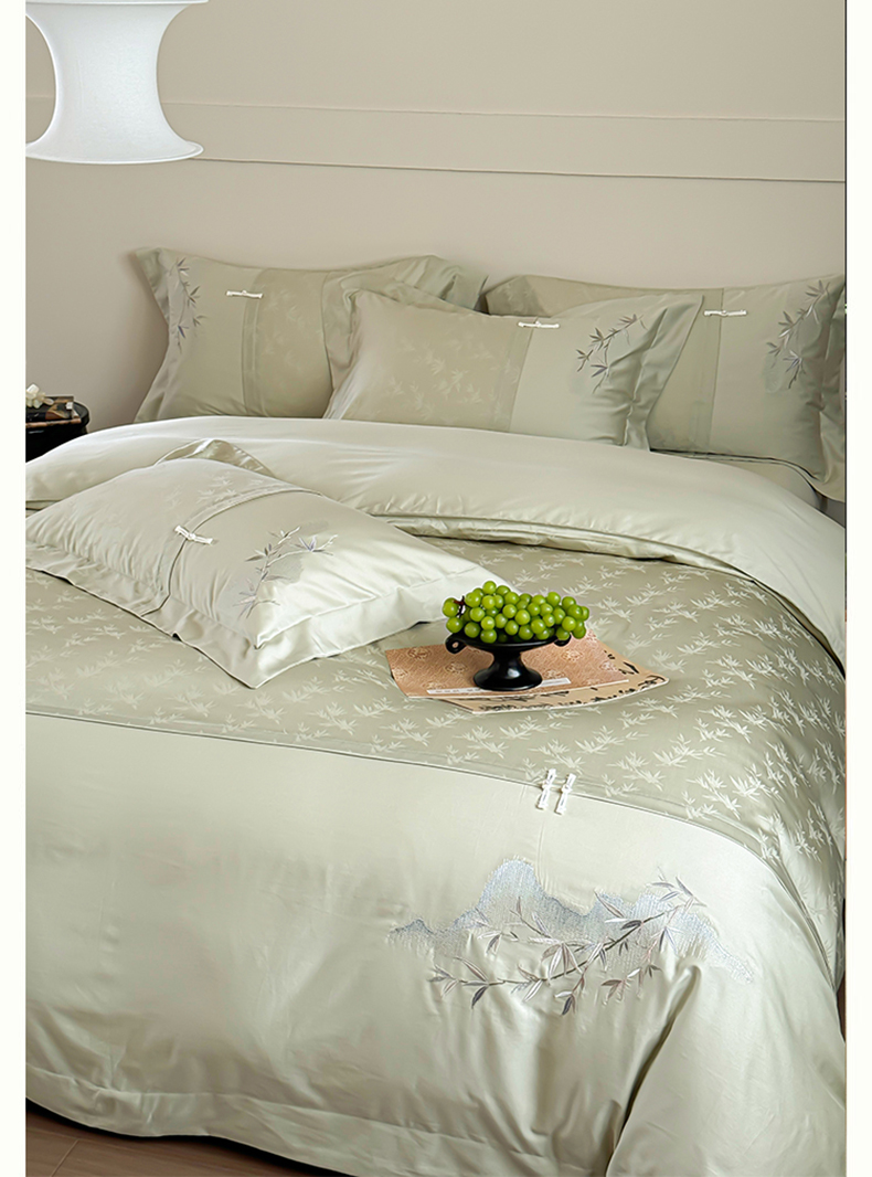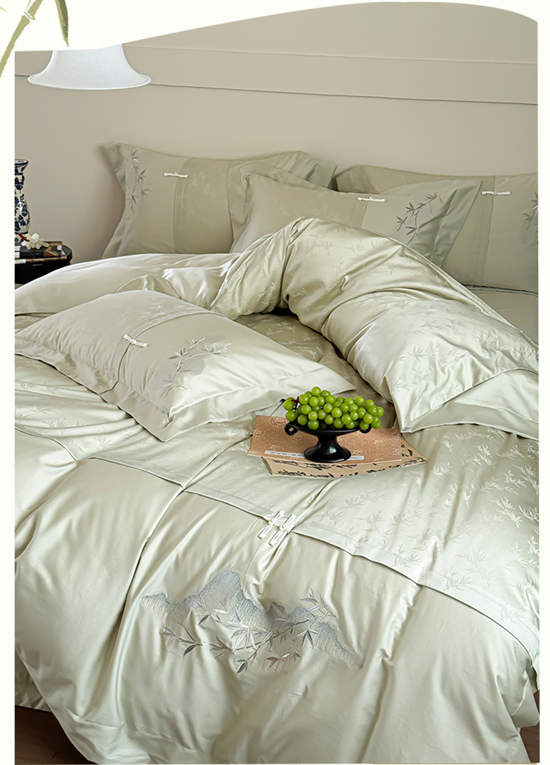 诗黛尔 2024秋冬新款新中式长绒棉提花刺绣四件套-竹韵系列 竹韵-叶青