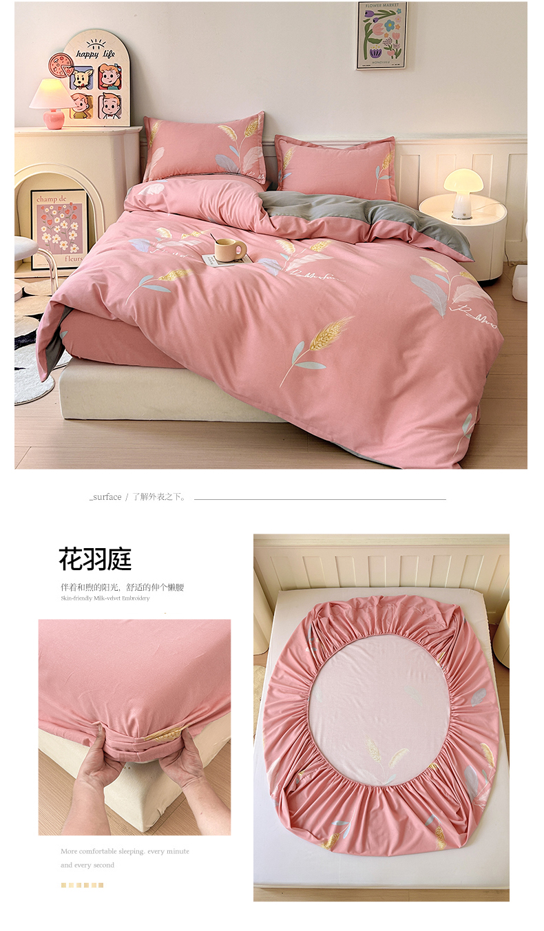2025新款加厚生态磨毛床笠四件套 花羽庭