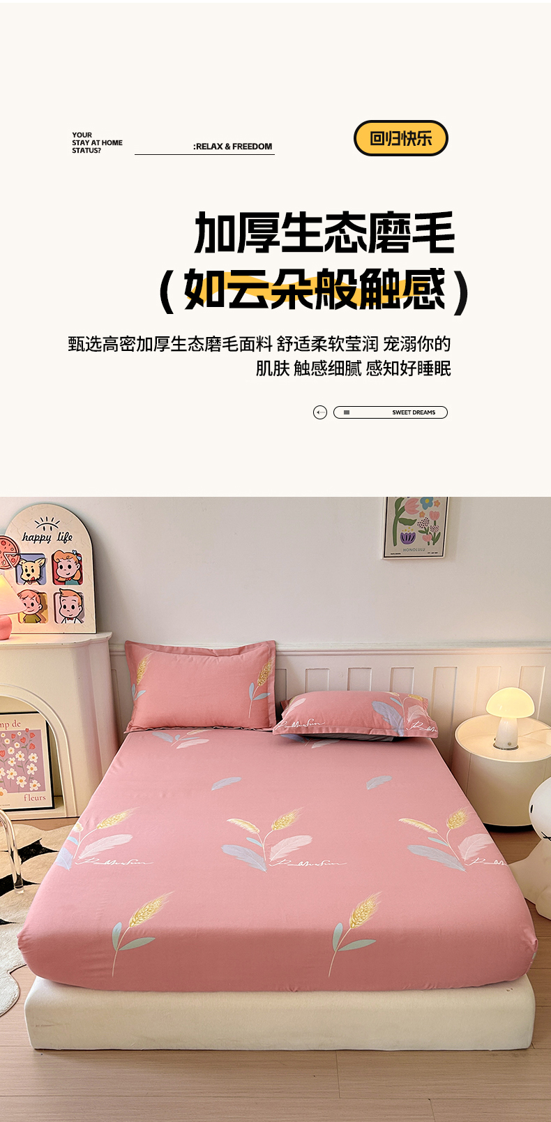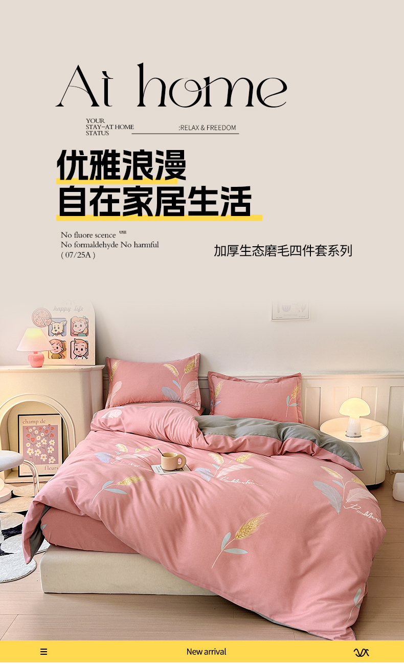 商品名称:2025新款加厚生态磨毛床笠四件套 花羽庭