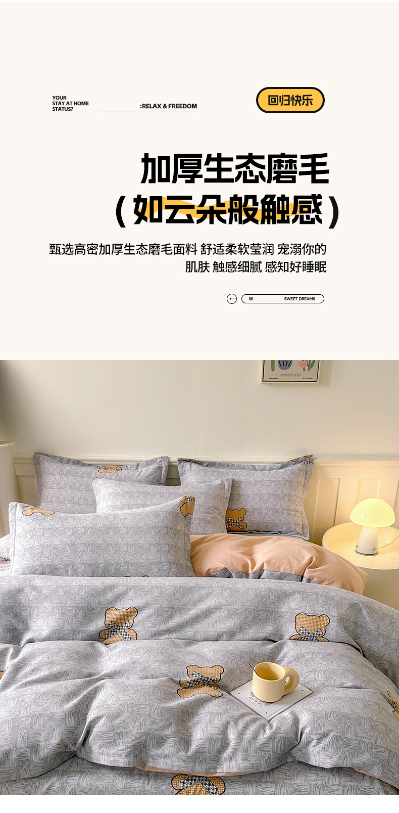 当前位置: 91家纺网 > 商品网购 > 床品套件 > 四件套 > 全棉普通四件套 > 2025新款加厚生态磨毛床单四件套 罗拉