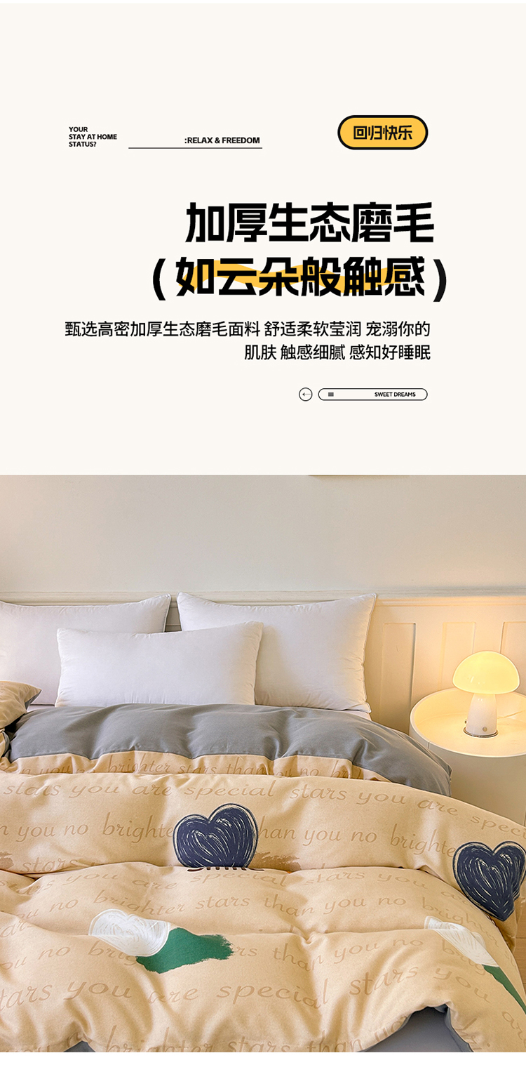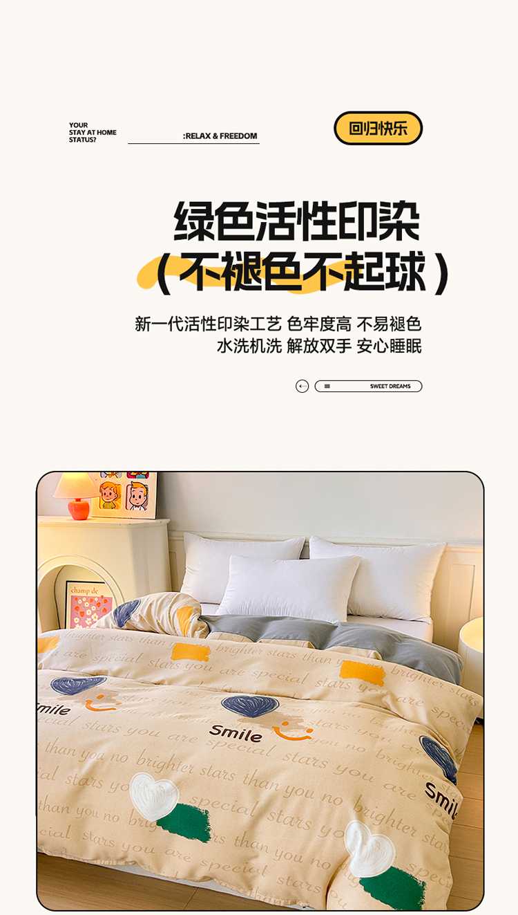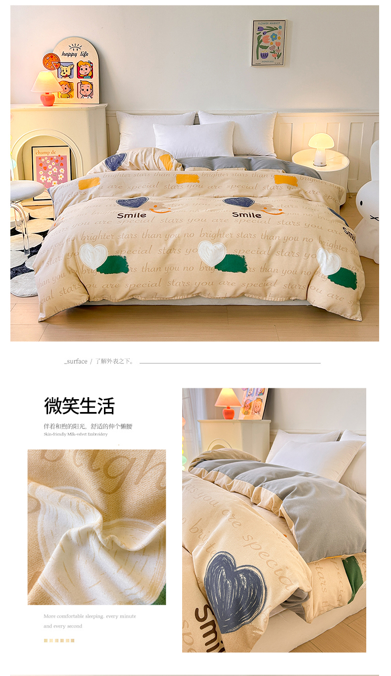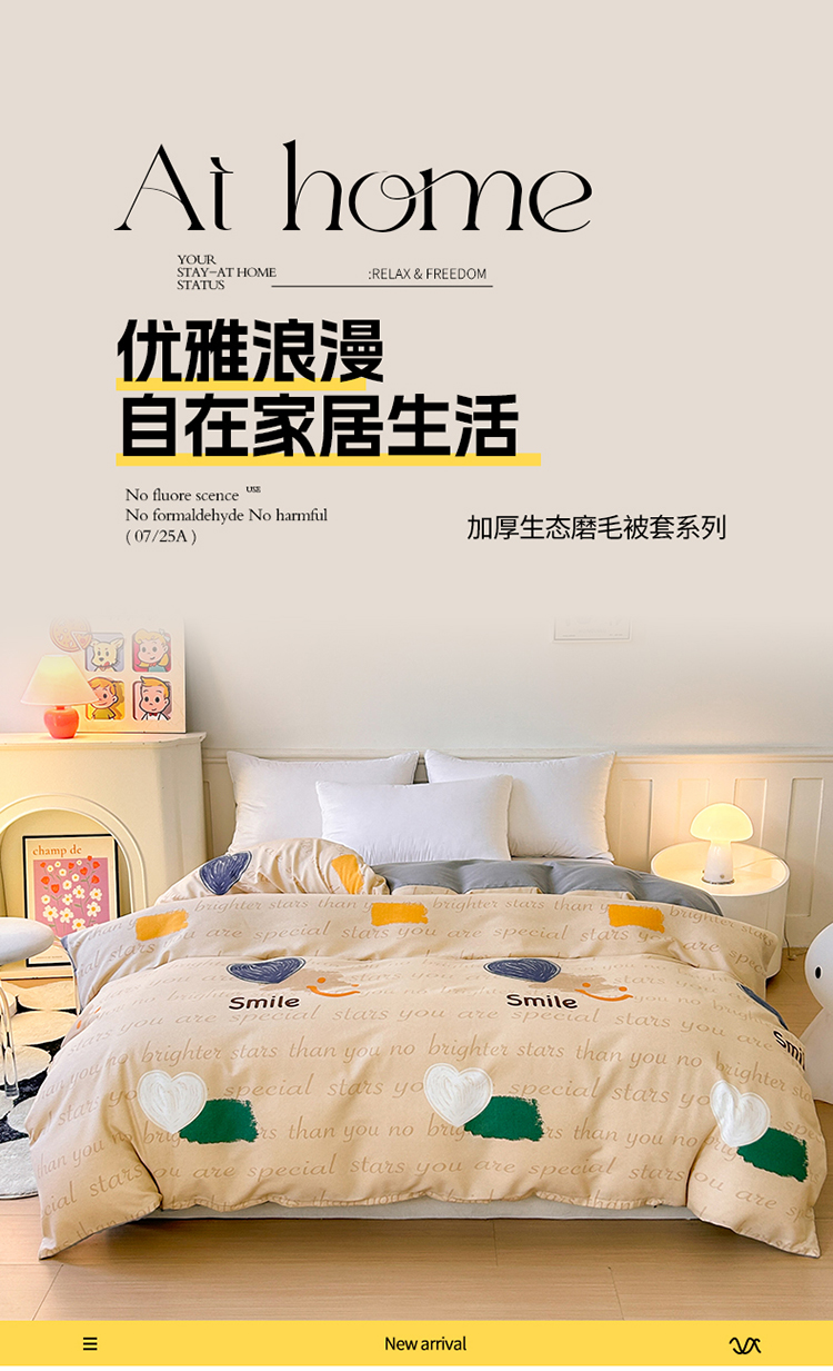 • 91家纺网 家纺一手货源 找家纺 2025新款加厚生态磨毛单被套 微笑生活