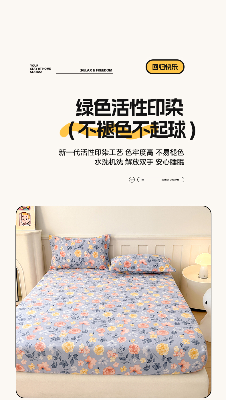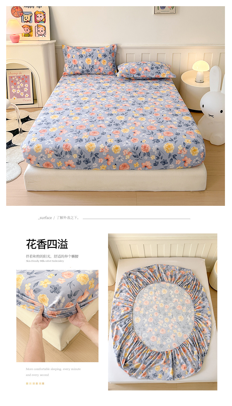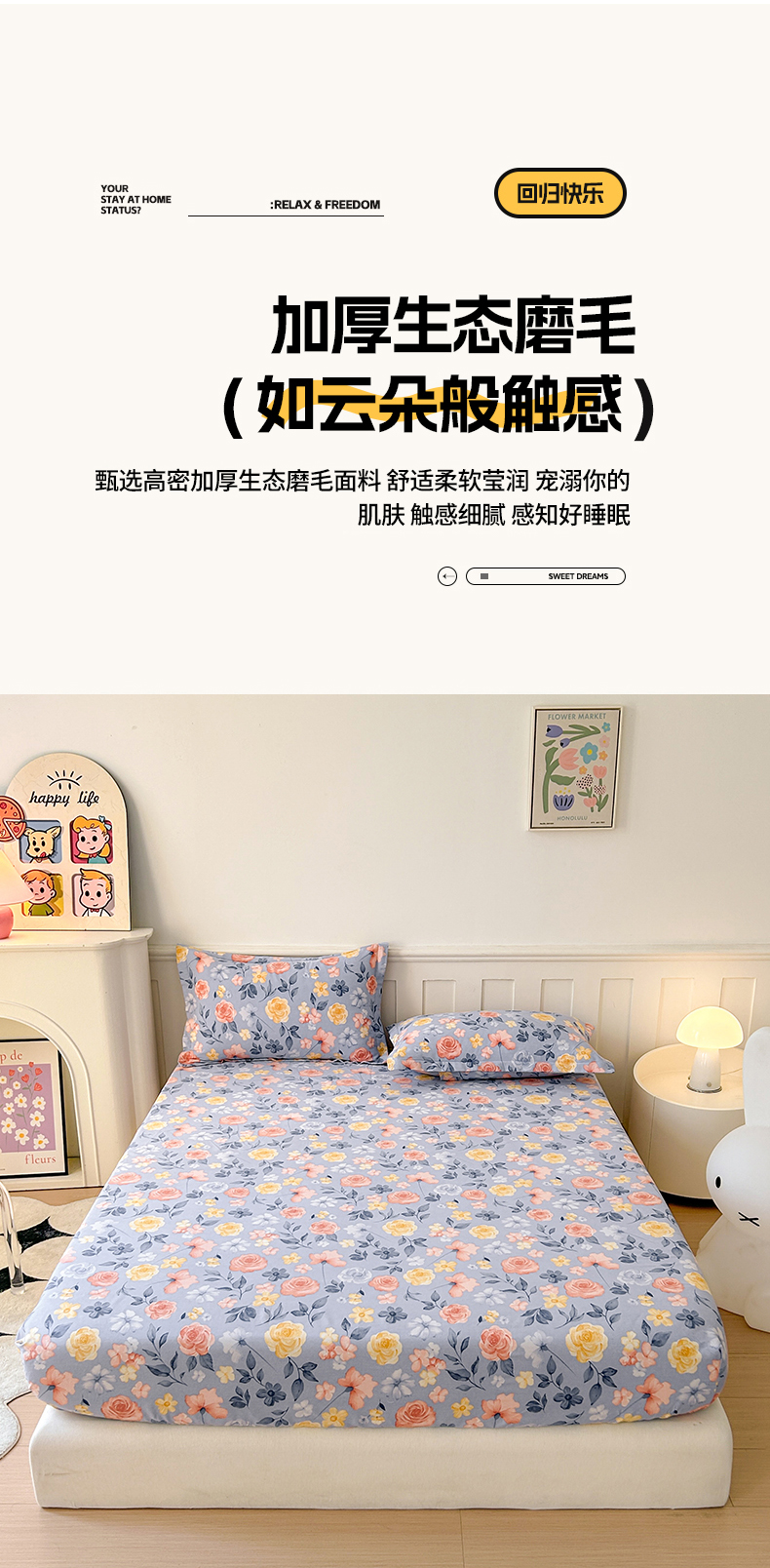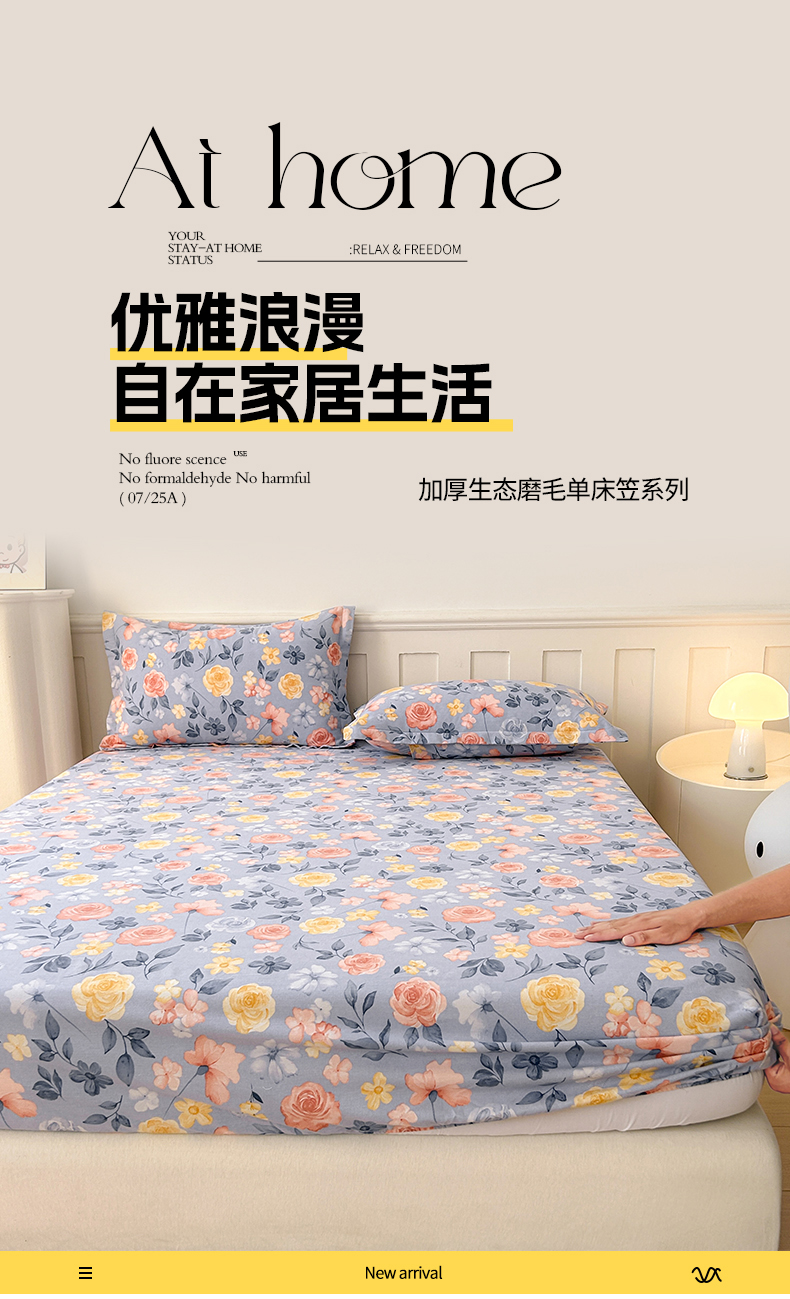 商品名称:2025新款加厚生态磨毛单床笠 花香四溢