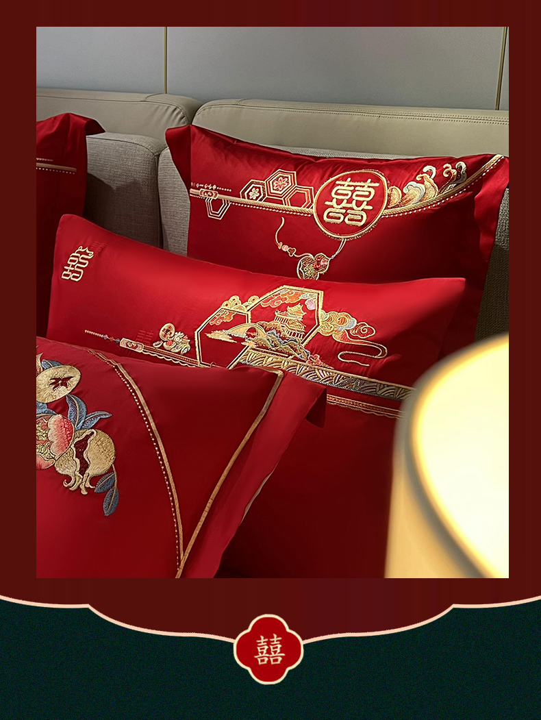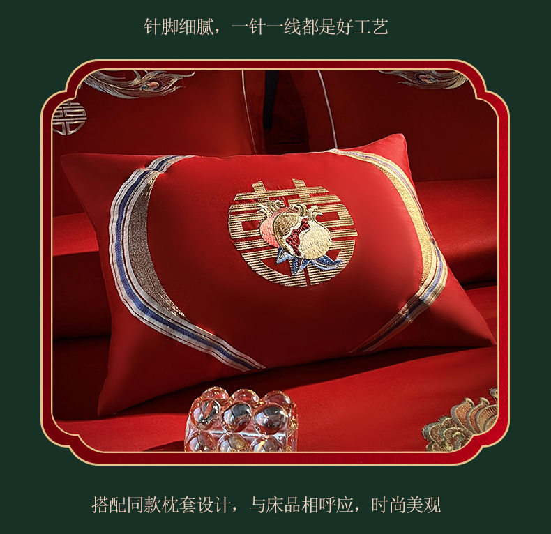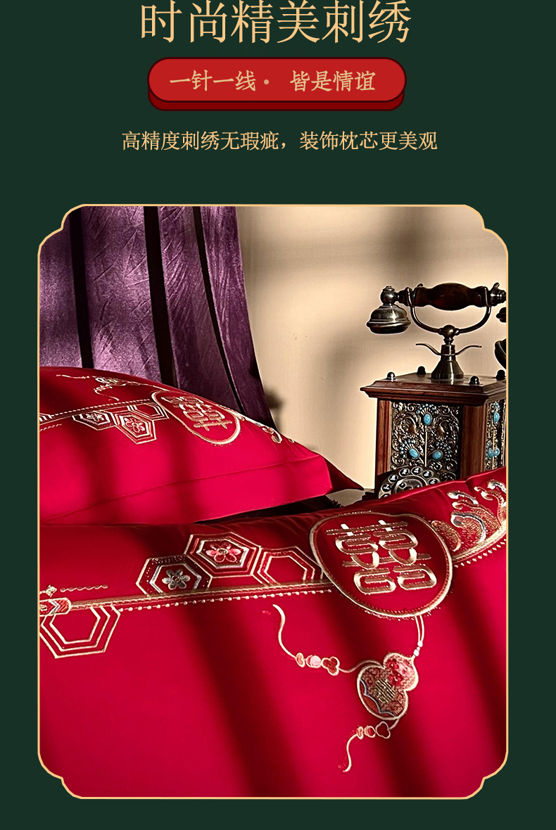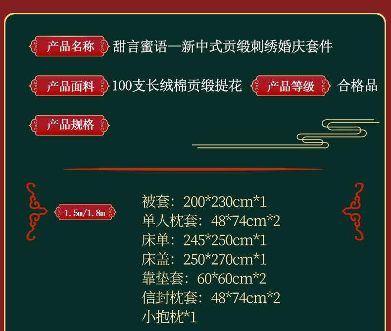 当前位置: 91家纺网 > 商品网购 > 床品套件 > 四件套 > 长绒棉四件套 > 2025新款长绒棉长绒棉贡缎提花款新中式古典韵味精美刺绣婚庆四件套多件套 甜言蜜语