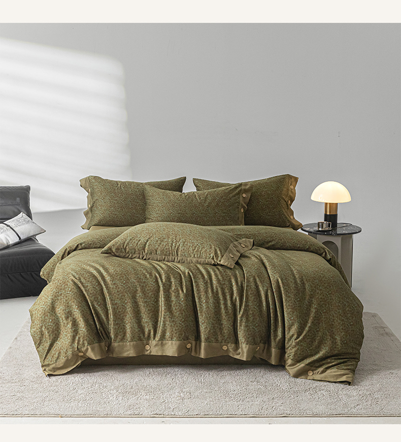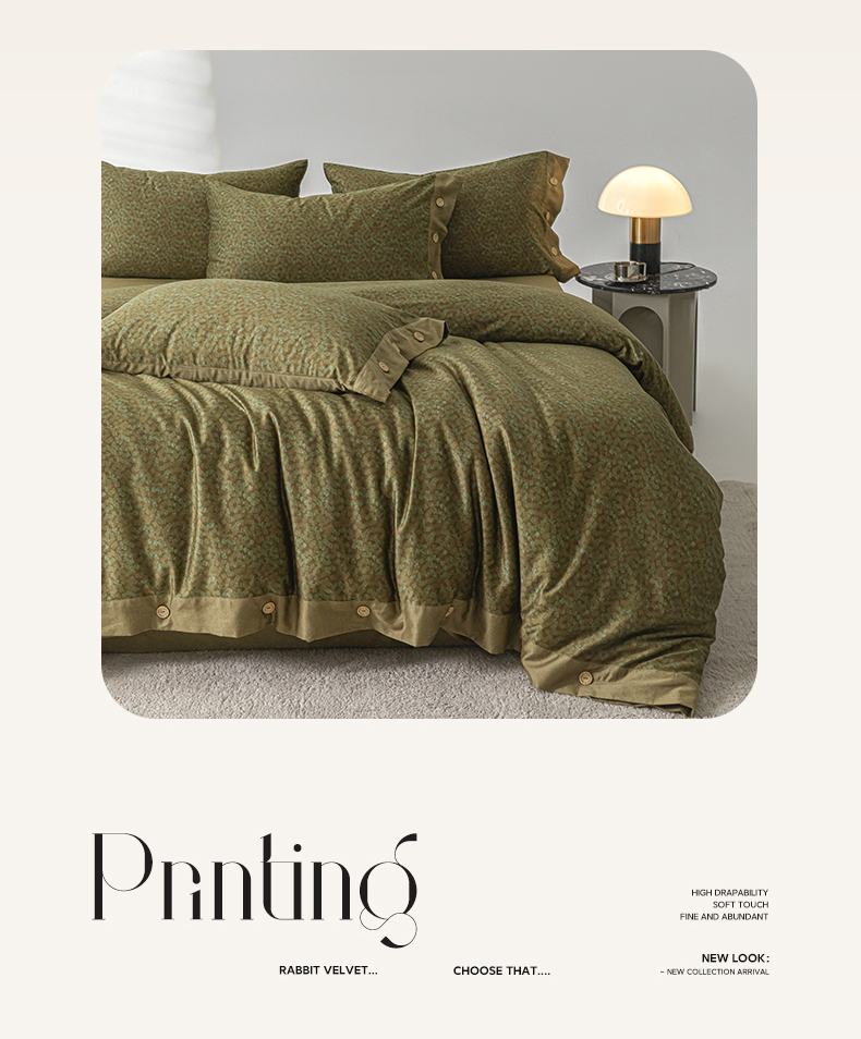 栩裕纺织 2024新款丝棉臻绒磨毛数码印花四件套--兰羽系列 兰羽-墨绿