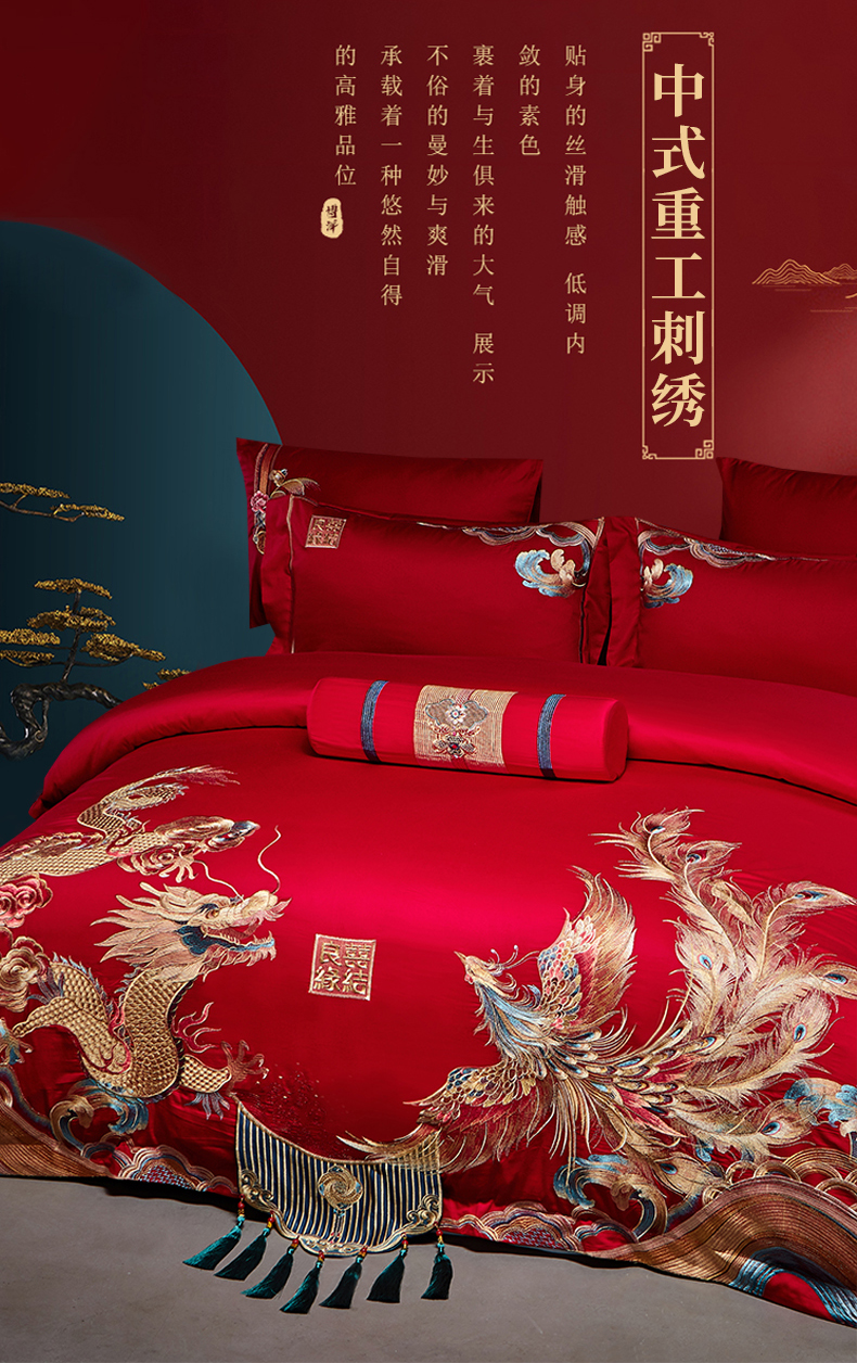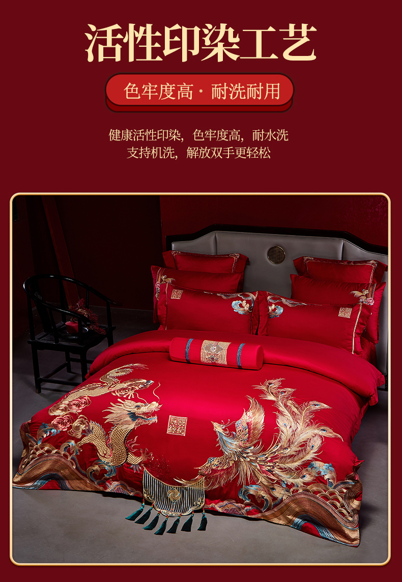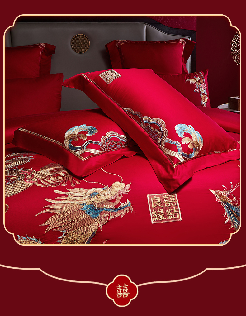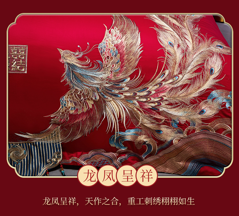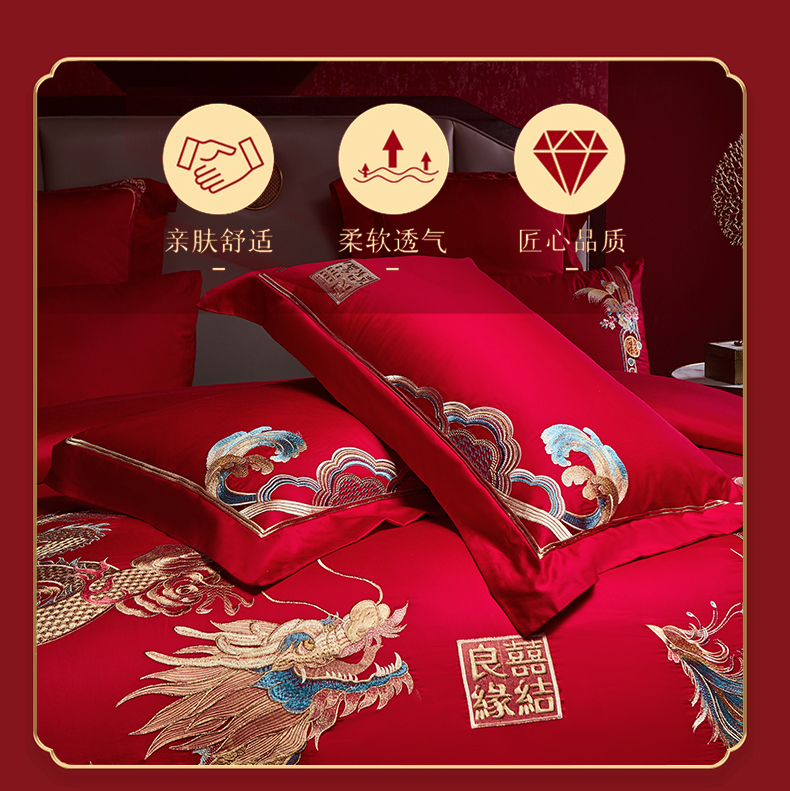 当前位置: 91家纺网 > 商品网购 > 床品套件 > 四件套 > 长绒棉四件套 > 2025新款长绒棉长绒棉贡缎提花款新中式古典韵味精美刺绣婚庆四件套多件套 龙凤喜缘
