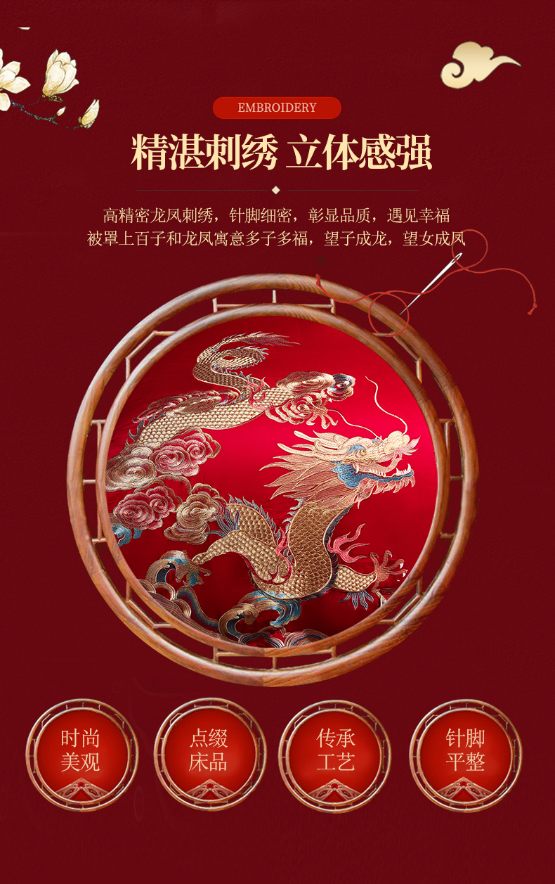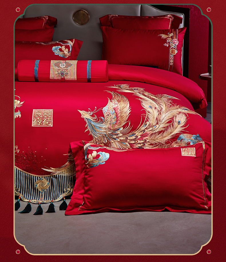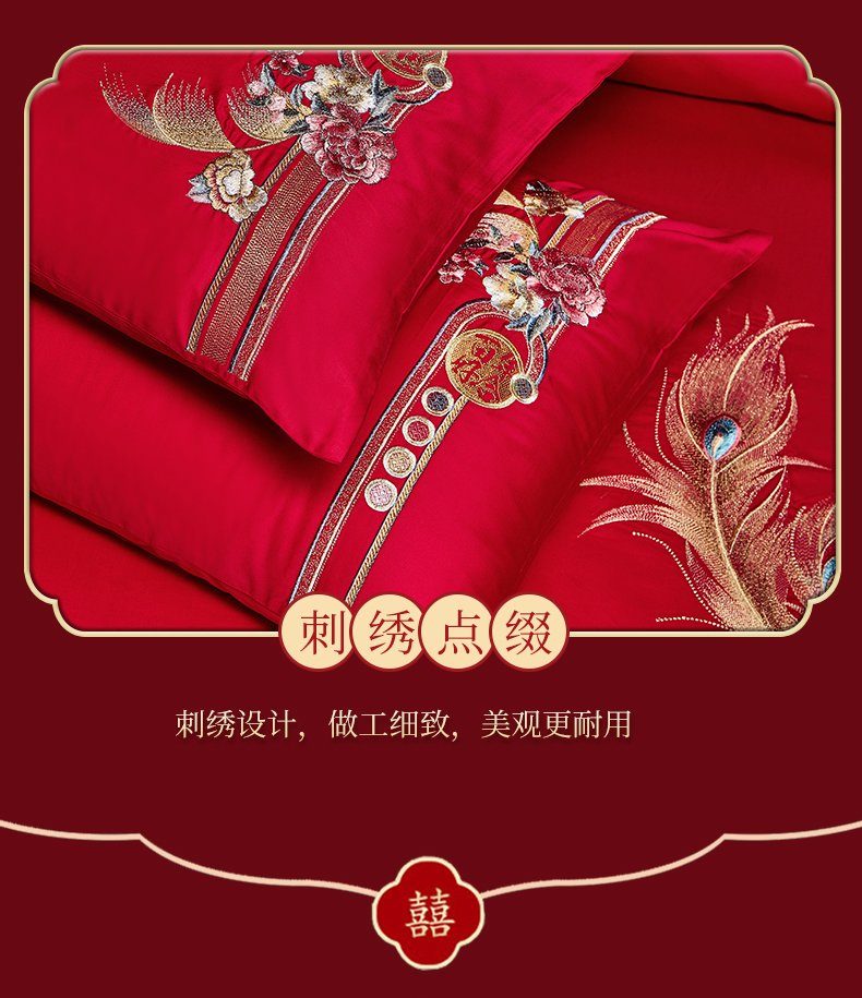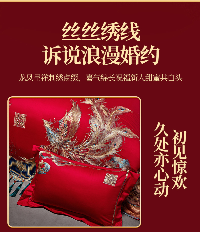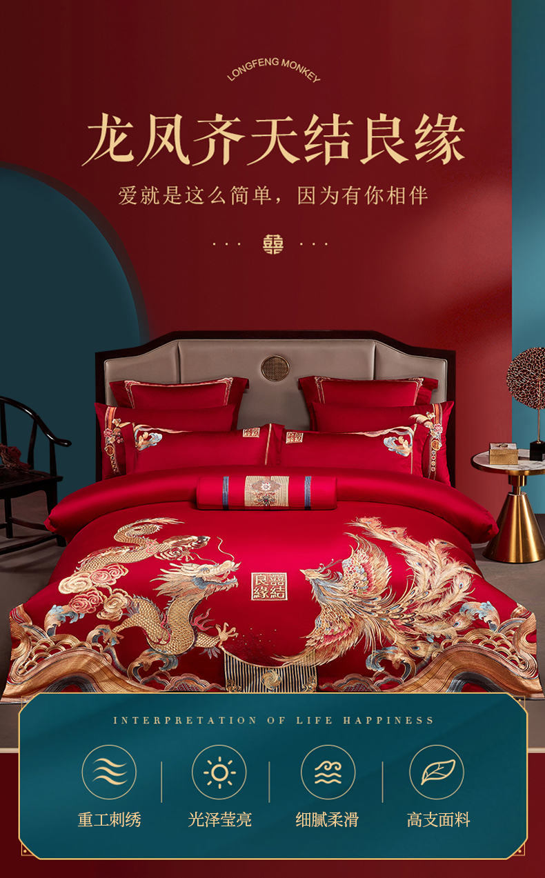 当前位置: 91家纺网 > 商品网购 > 床品套件 > 四件套 > 长绒棉四件套 > 2025新款长绒棉长绒棉贡缎提花款新中式古典韵味精美刺绣婚庆四件套多件套 龙凤喜缘