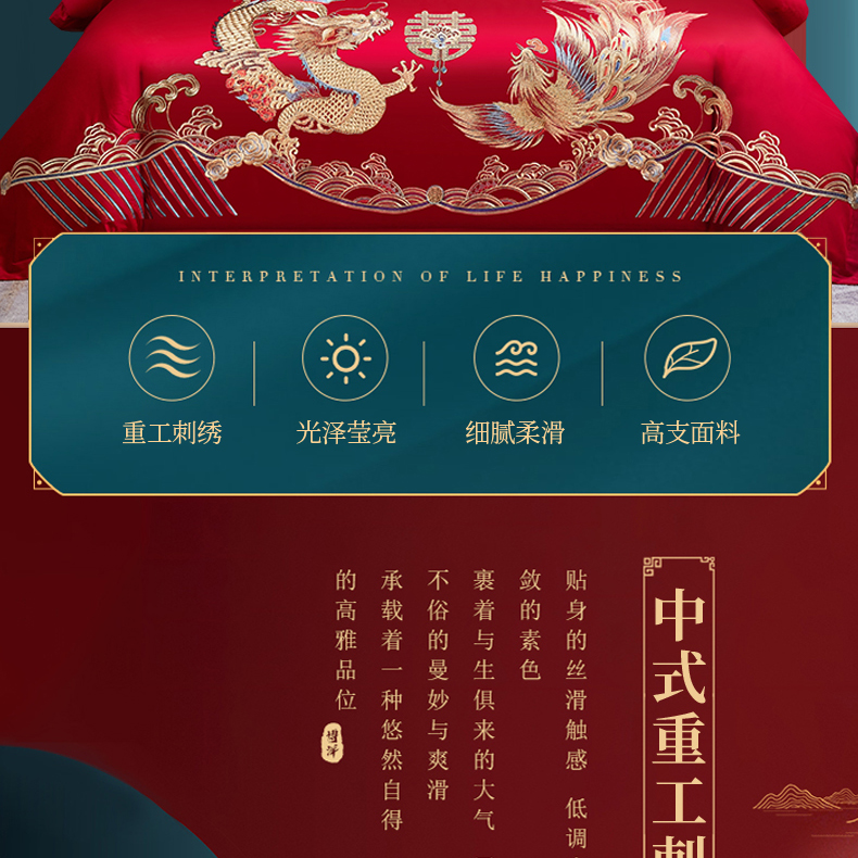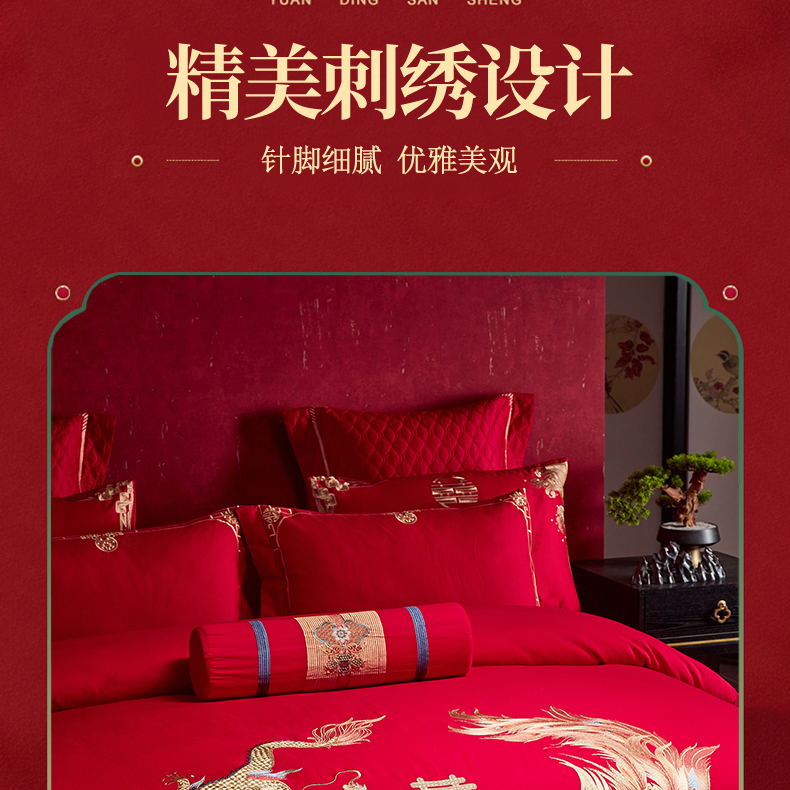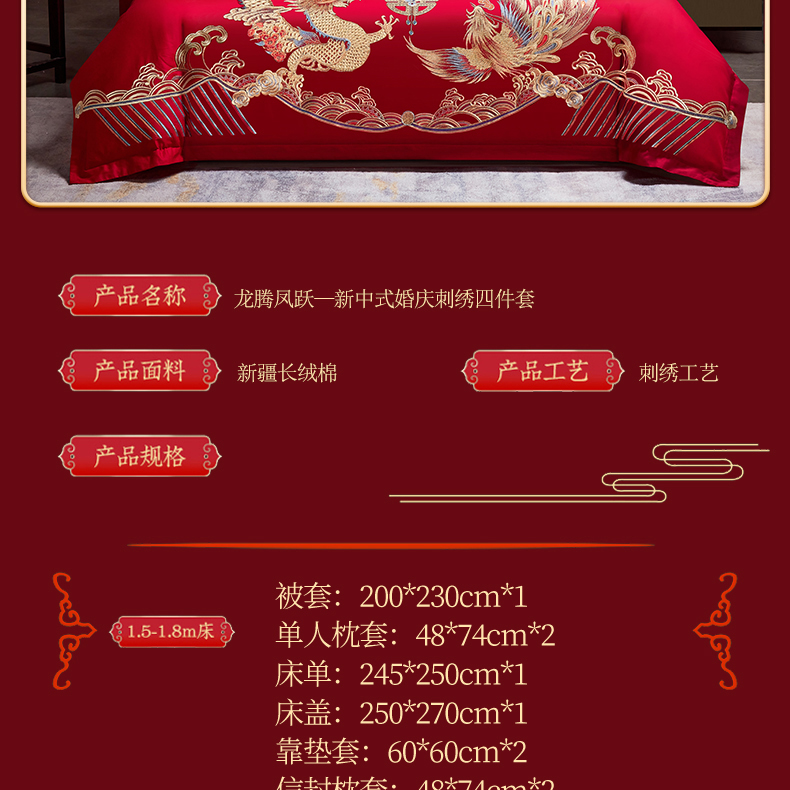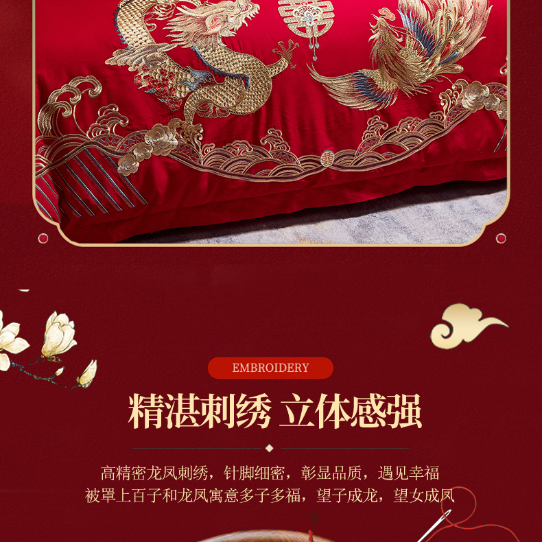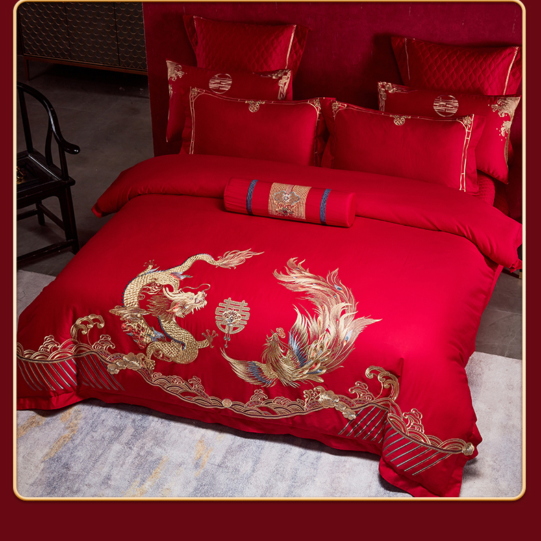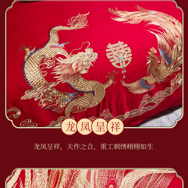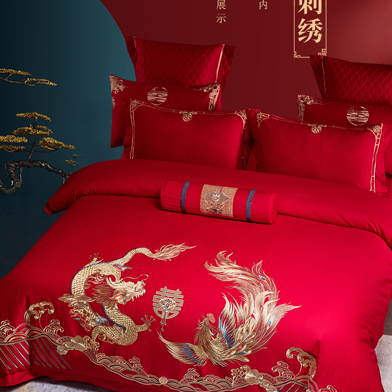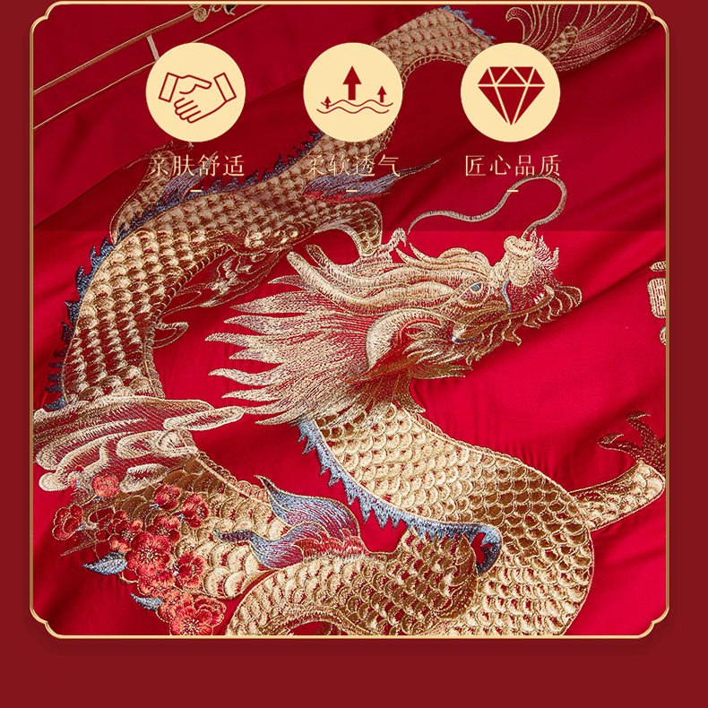 当前位置: 91家纺网 > 商品网购 > 床品套件 > 四件套 > 全棉普通四件套 > 2025新款40s全棉长绒棉新中式刺绣婚庆四件套多件套 龙腾凤跃