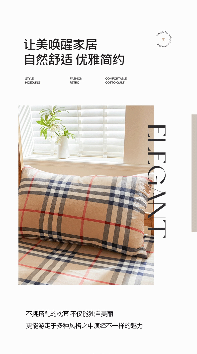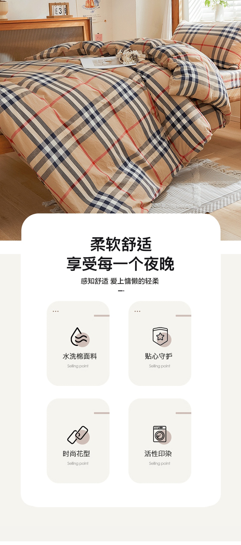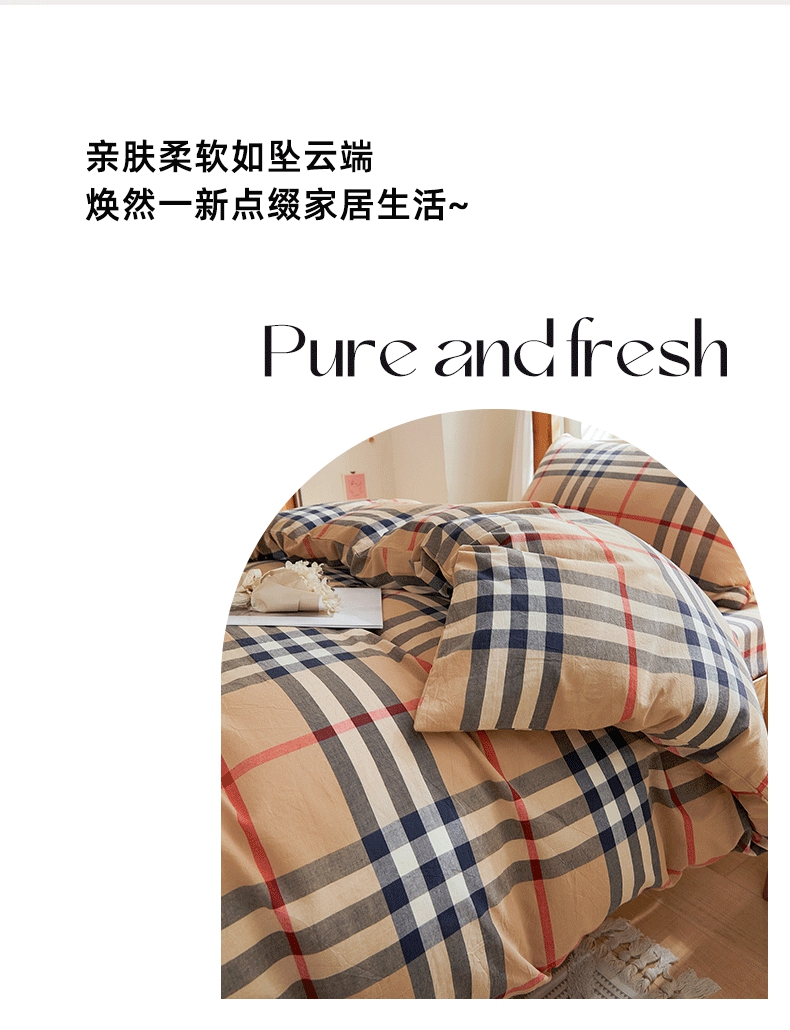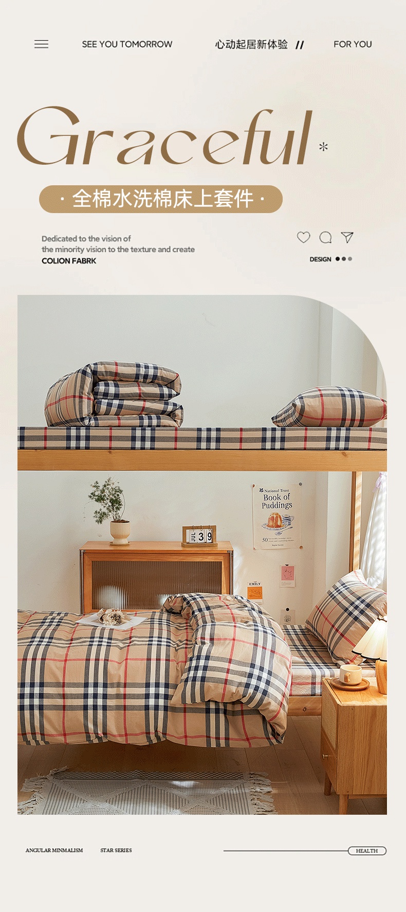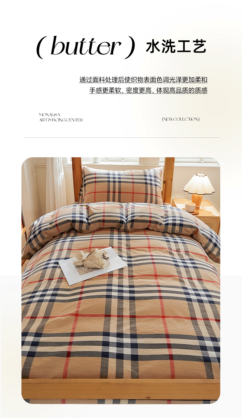 韩约家纺 2024新款全棉水洗棉三四件套 品尚-咖