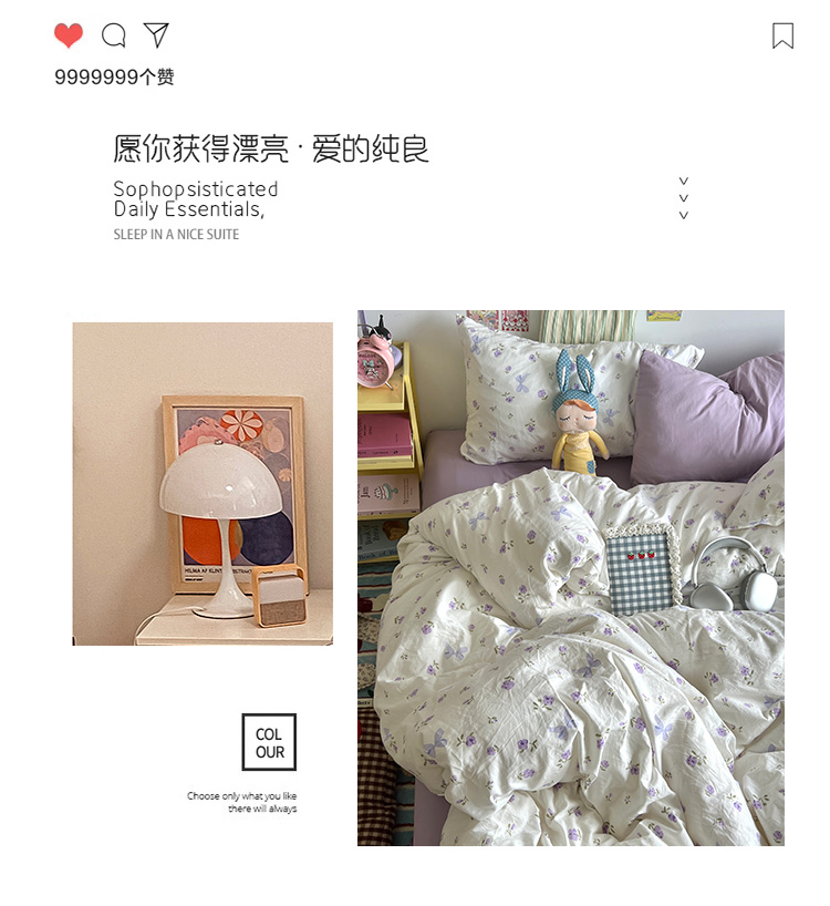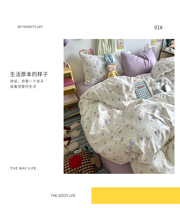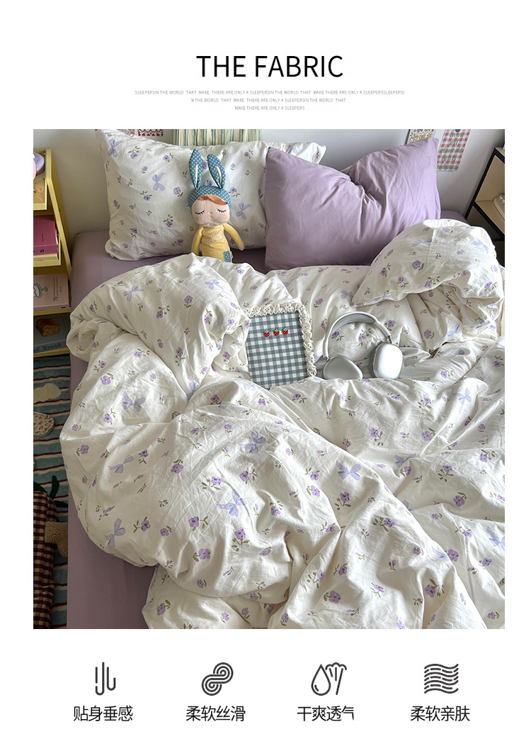 当前位置: 91家纺网 > 商品网购 > 床品套件 > 四件套 > 水洗棉四件套 > 原素 2024学生季专属A类水洗棉印花四件套 紫霞仙子