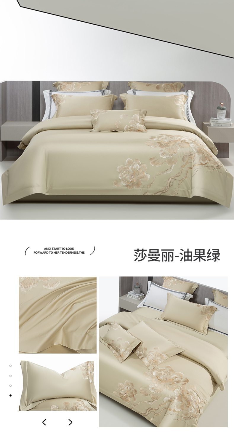商品名称:2025新款长绒棉高端绣花四件套-莎曼丽 莎曼丽-油果绿