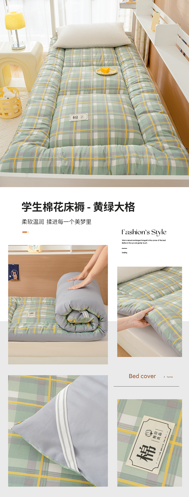 商品名称:默忆 2025新款洛卡棉水洗棉棉花床垫床褥学生床垫子床褥子 绿黄格