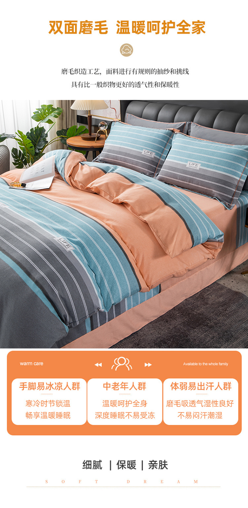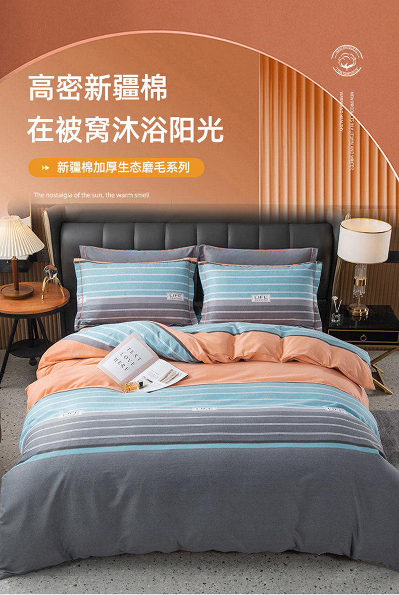 商品名称:润淳 2025新款加厚活性磨毛四件套纯棉三件套誓言桔