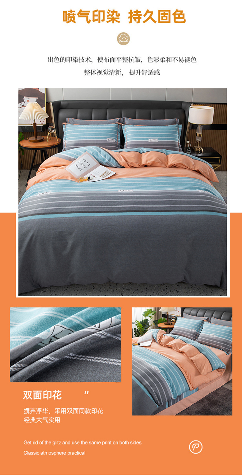 润淳 2025新款加厚活性磨毛四件套纯棉三件套誓言桔
