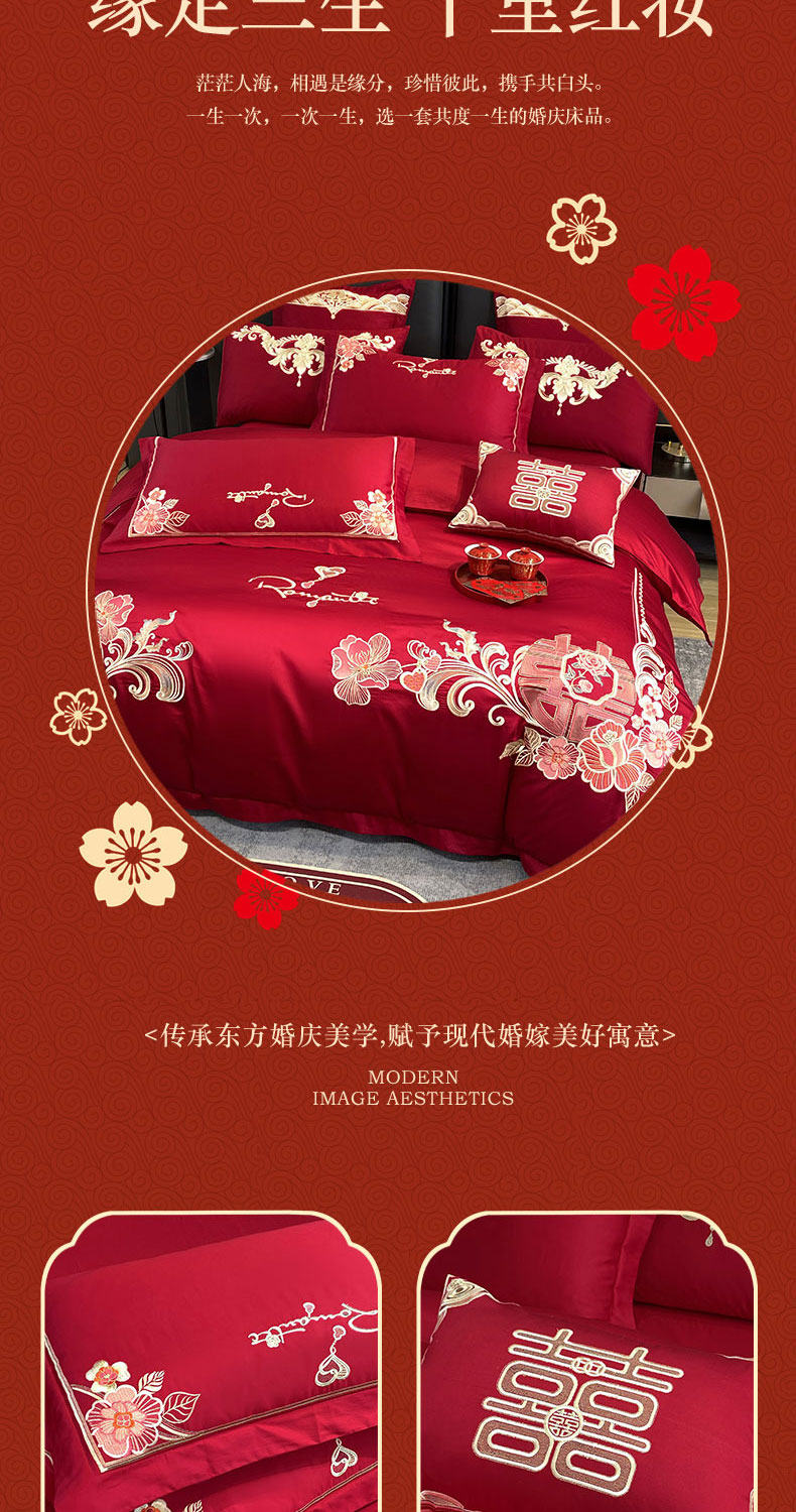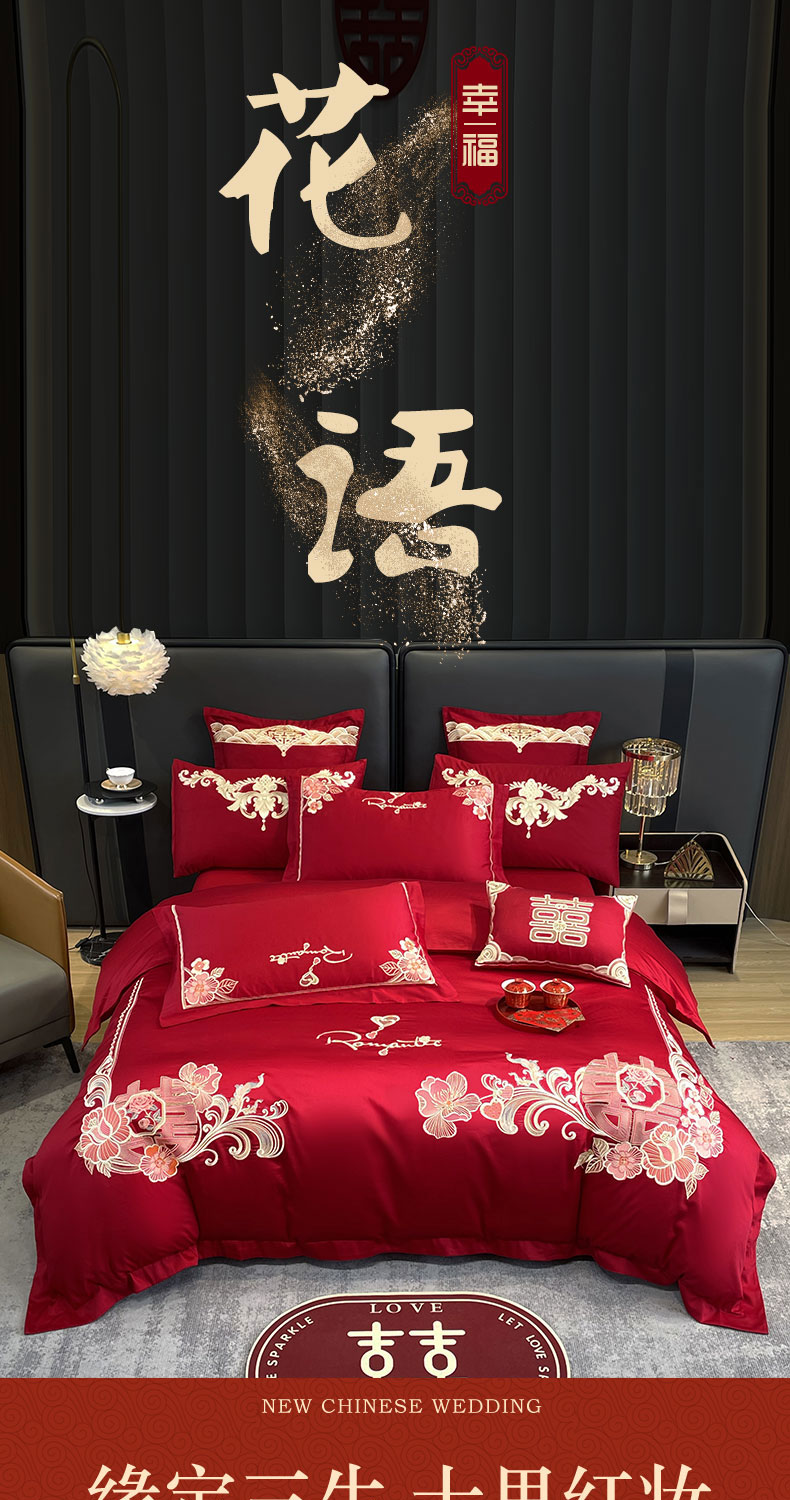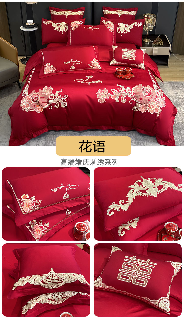 当前位置: 91家纺网 > 商品网购 > 床品套件 > 四件套 > 婚庆四件套 > 芊囍纺 2024新款亲肤双面磨毛刺绣款婚庆四件套 花语
