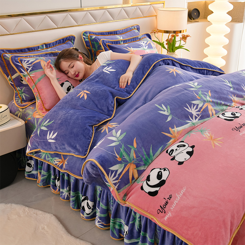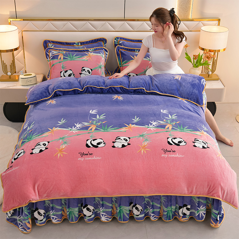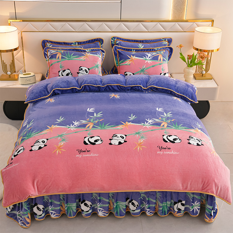 商品名称:爱洛家纺 2024新款高克重牛奶绒印花四件套 熊猫