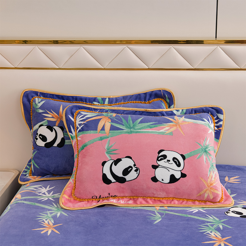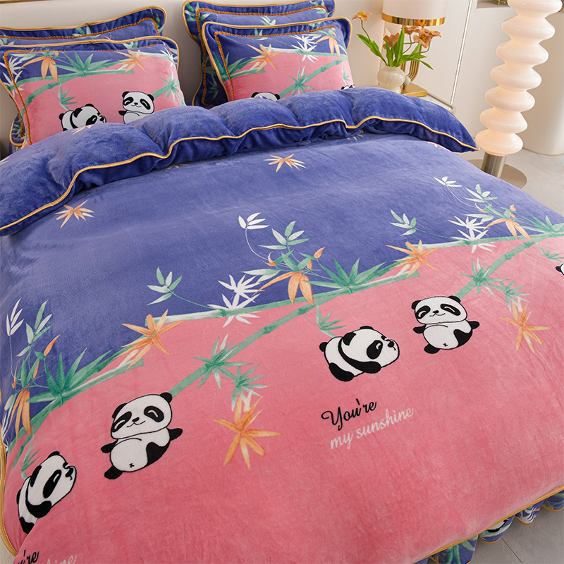 爱洛家纺 2024新款高克重牛奶绒印花四件套 熊猫