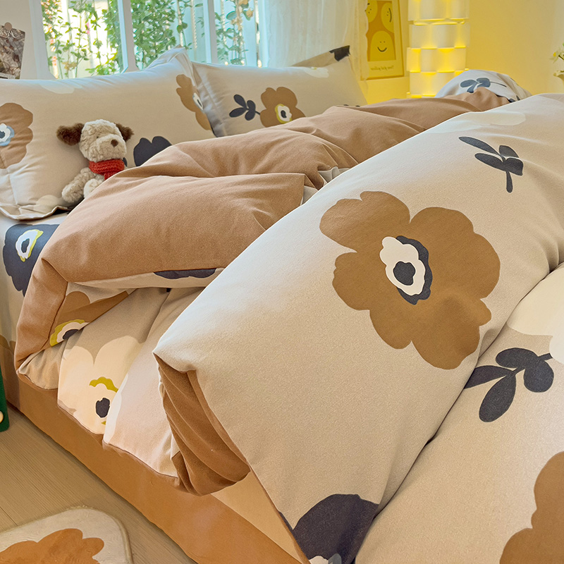 2024新款全棉印花磨毛系列四件套 温柔可可