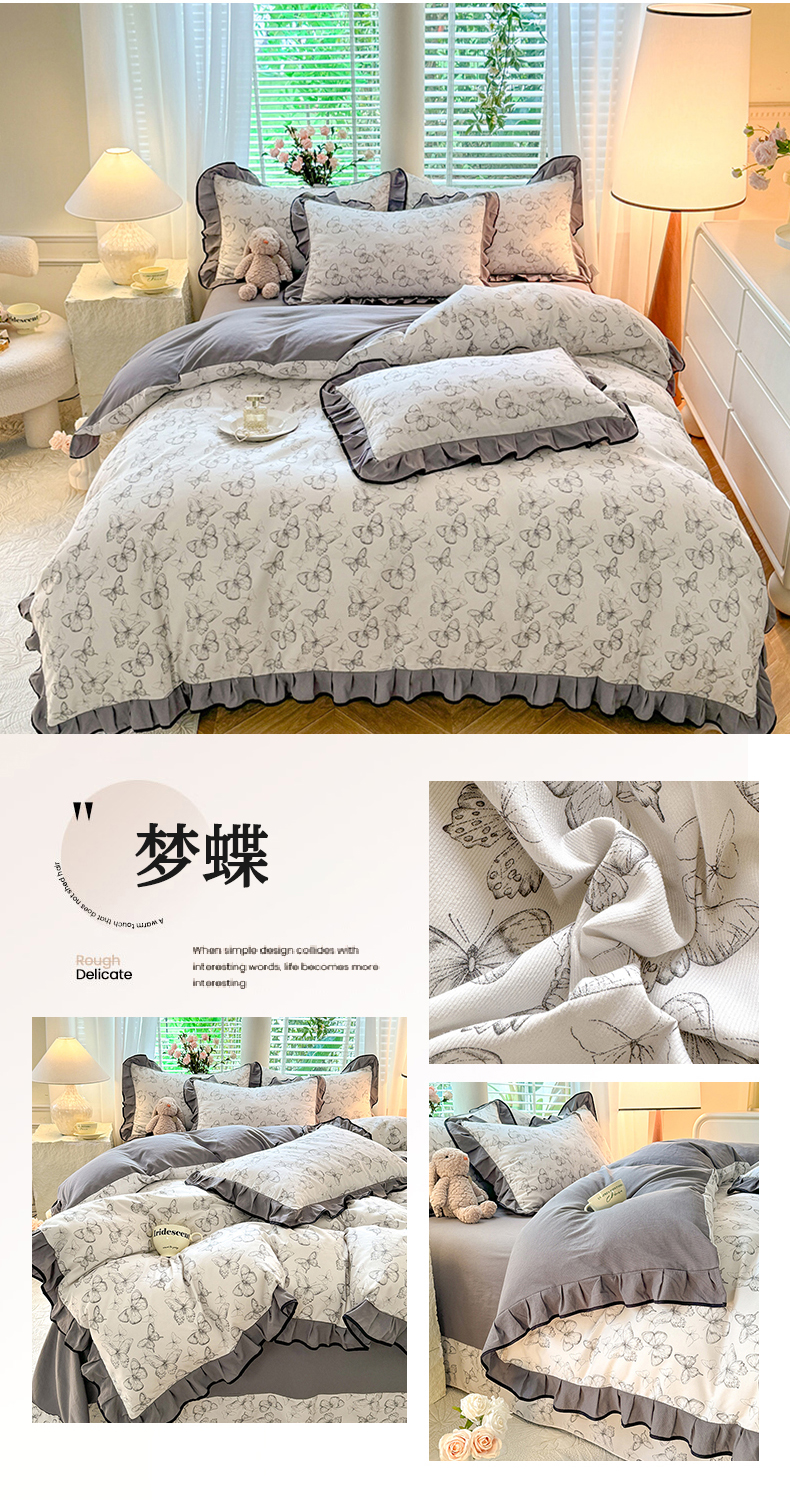 商品名称:韩约家纺 2024秋冬加厚1针织棉时尚花边款四件套 梦蝶