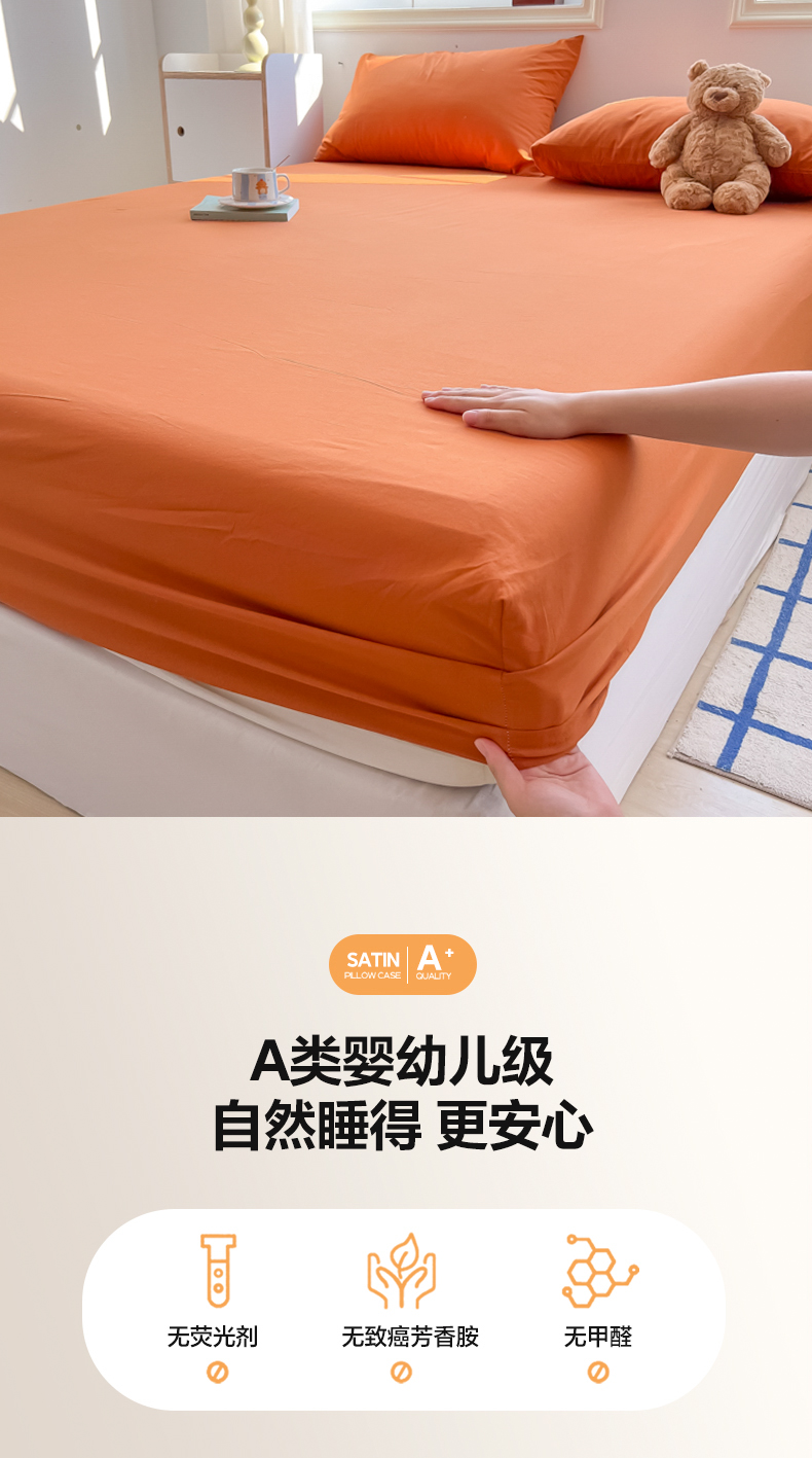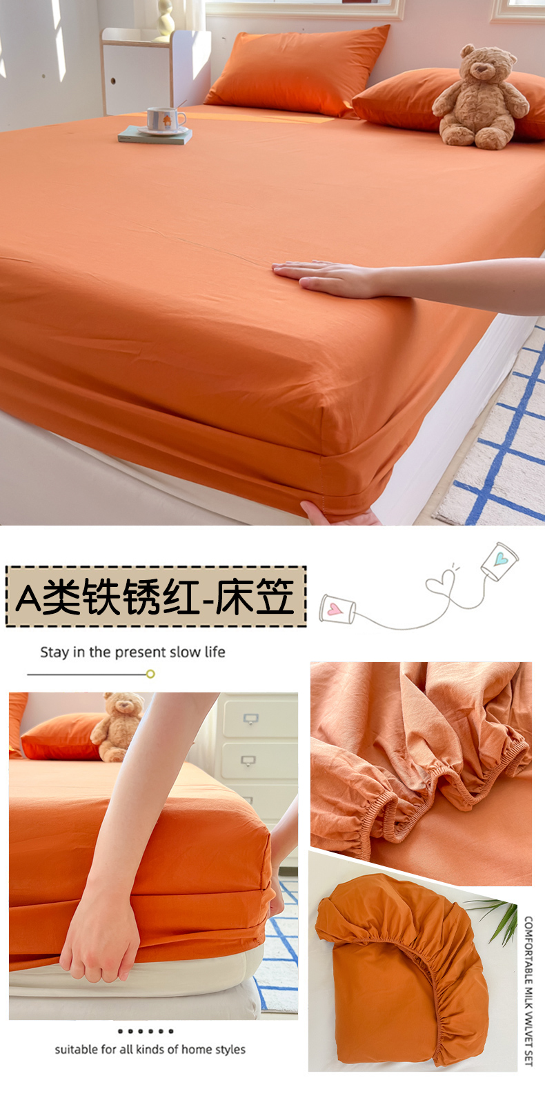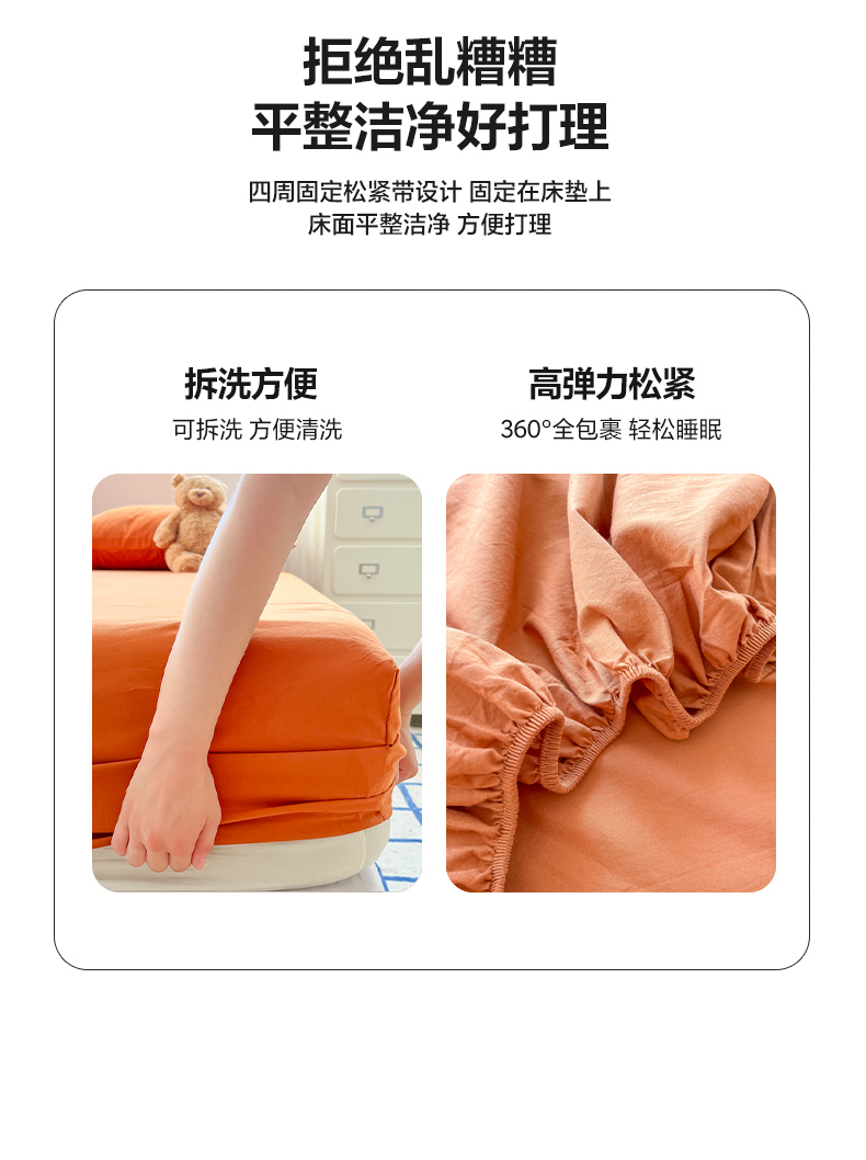• 91家纺网 家纺一手货源 找家纺 韩巢家纺 2024新款A类纯色良品格子水洗棉床笠单件全包围防滑床单床罩保护套 A类铁锈红-床笠