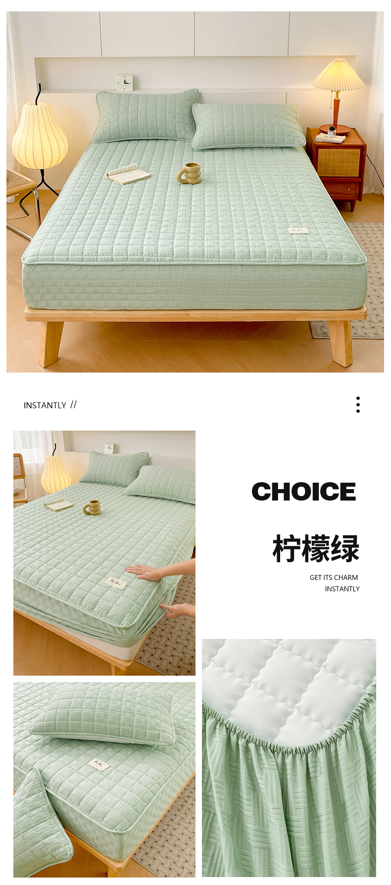 商品名称:曼陀罗 2025新款A类华夫格大豆纤维夹棉床笠 柠檬绿