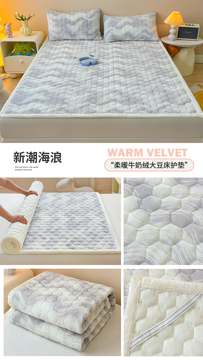 当前位置: 91家纺网 > 商品网购 > 床垫/床褥 > 普通床垫 > 伊人坊 2024新款牛奶绒印花大豆夹棉床护垫 新潮海浪