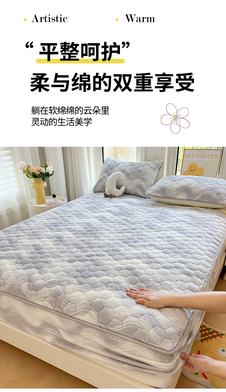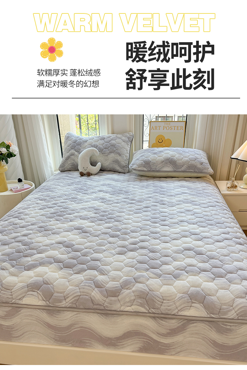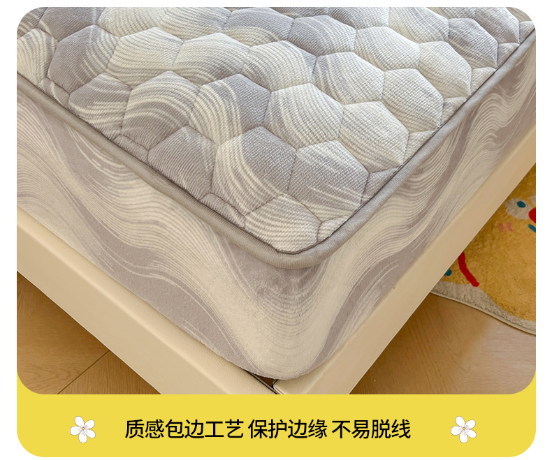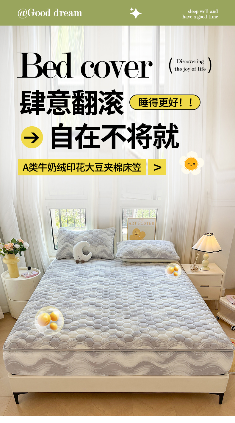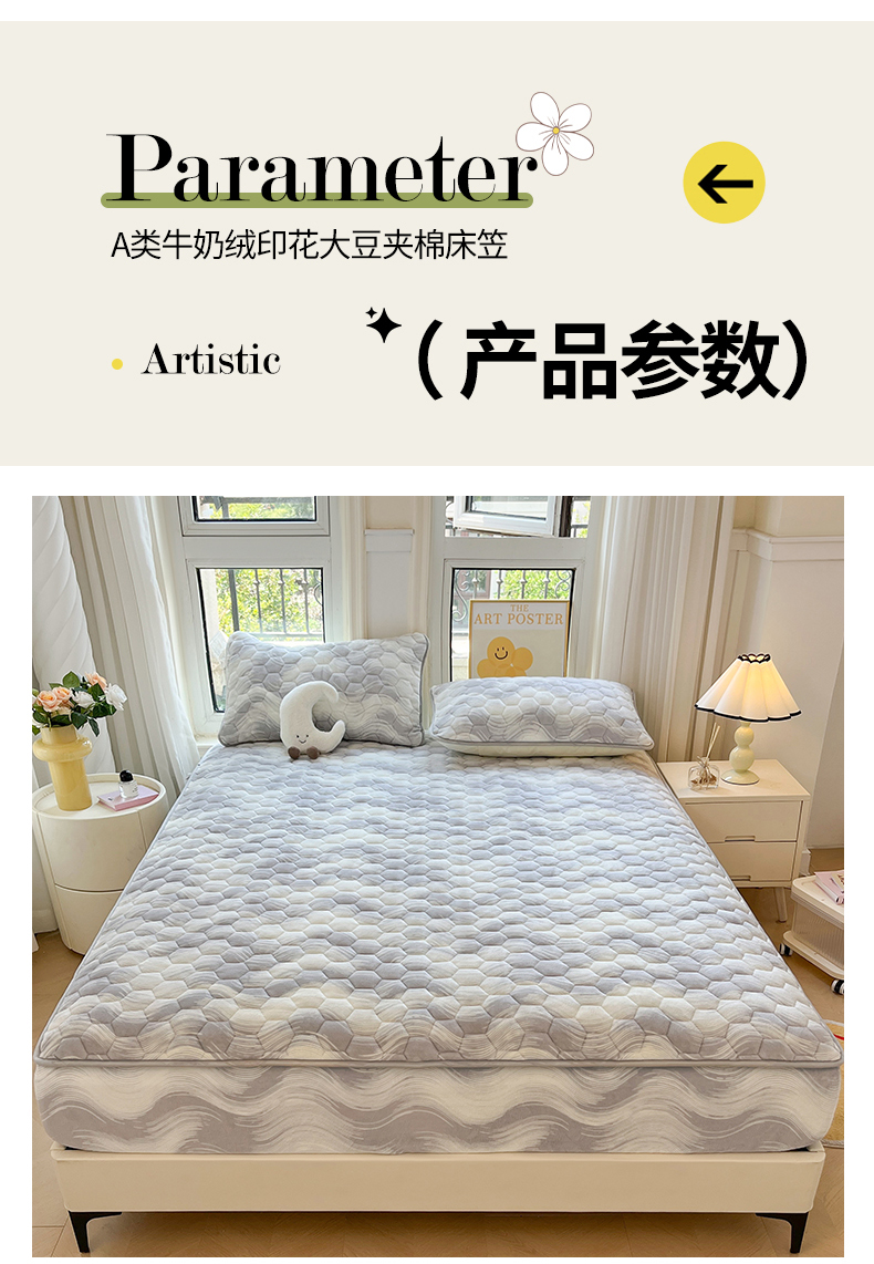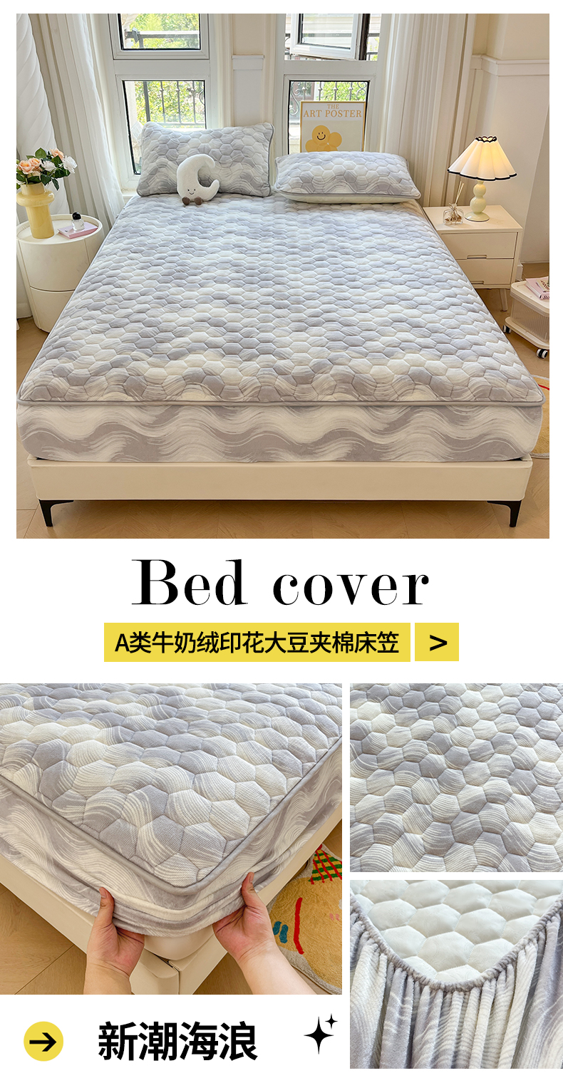 • 91家纺网 家纺一手货源 找家纺 伊人坊 2024新款牛奶绒印花大豆夹棉床笠 新潮海浪