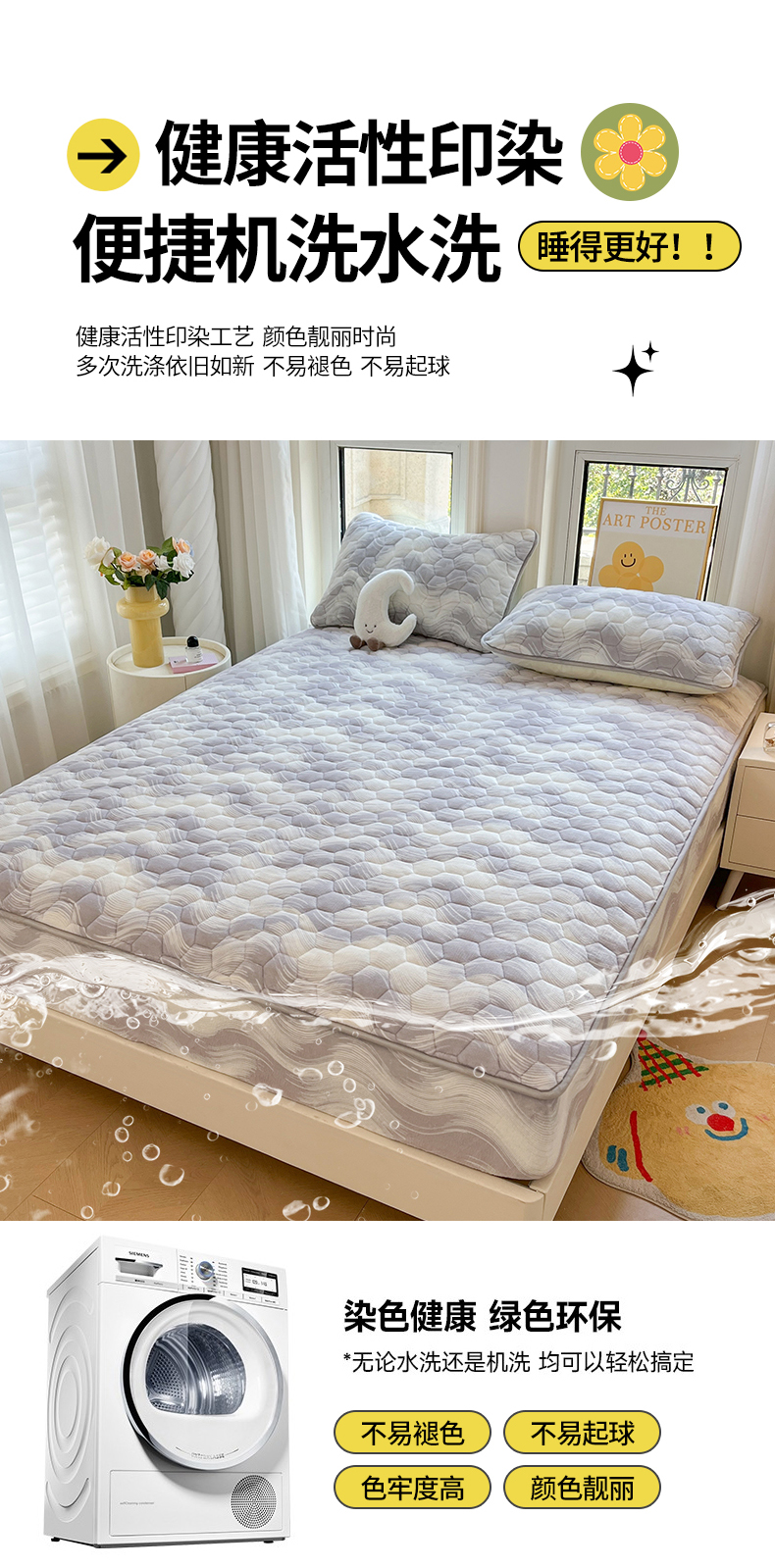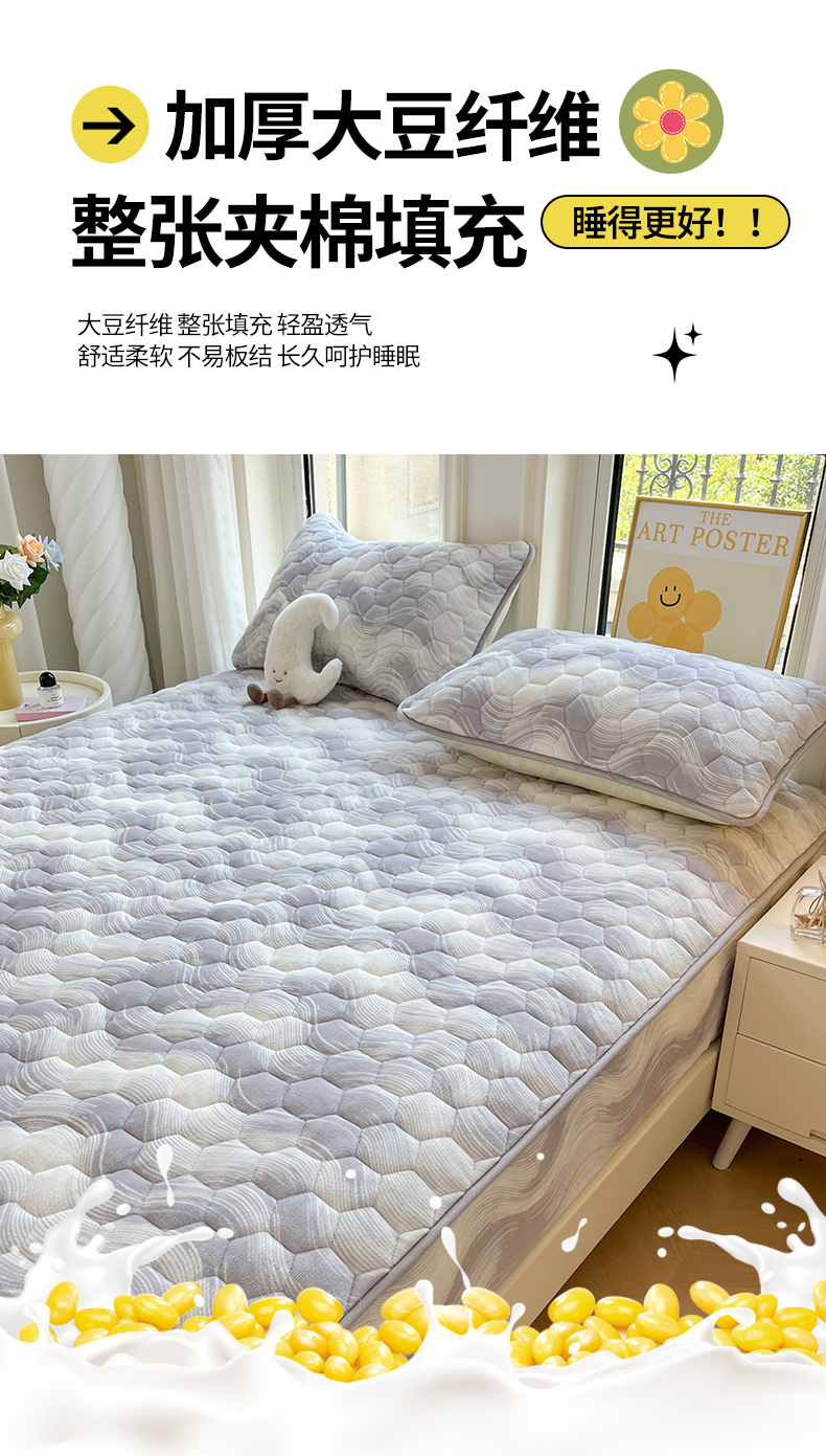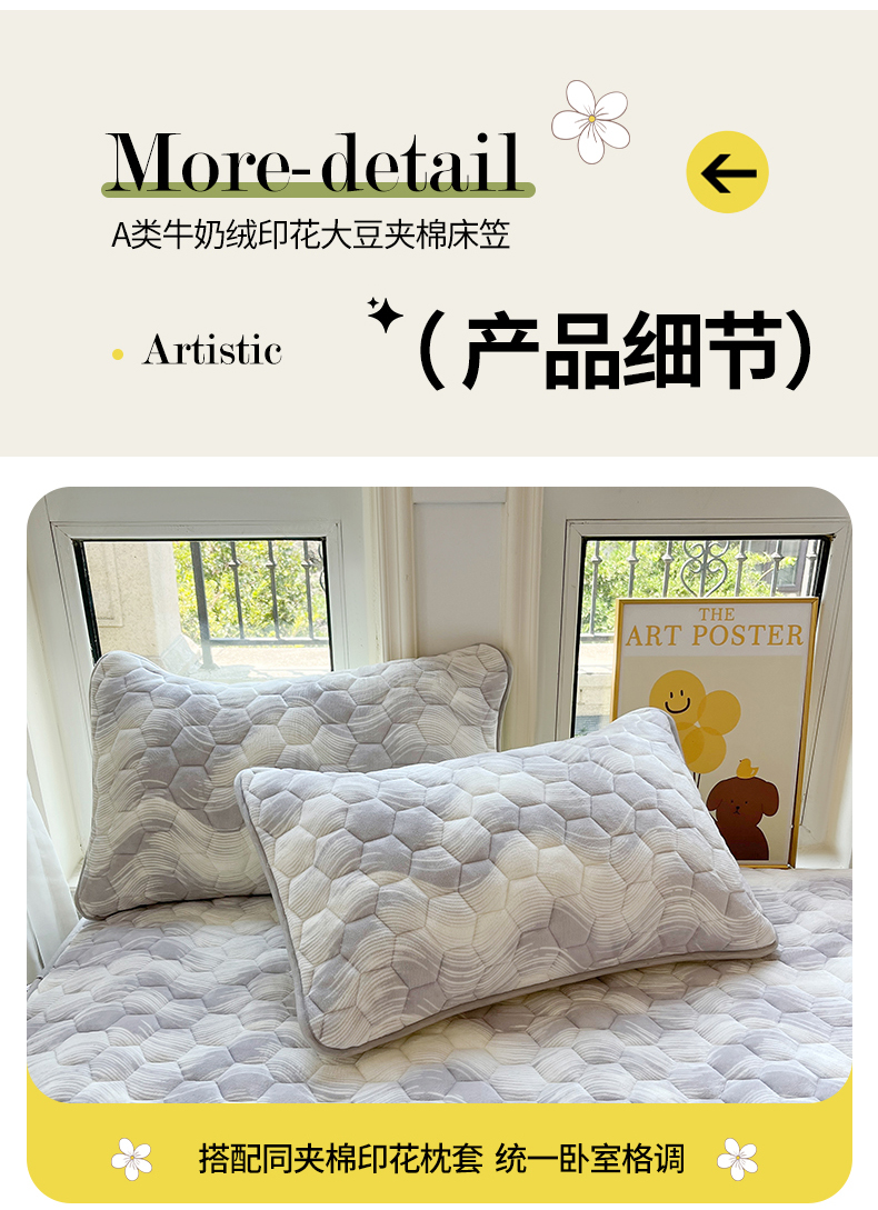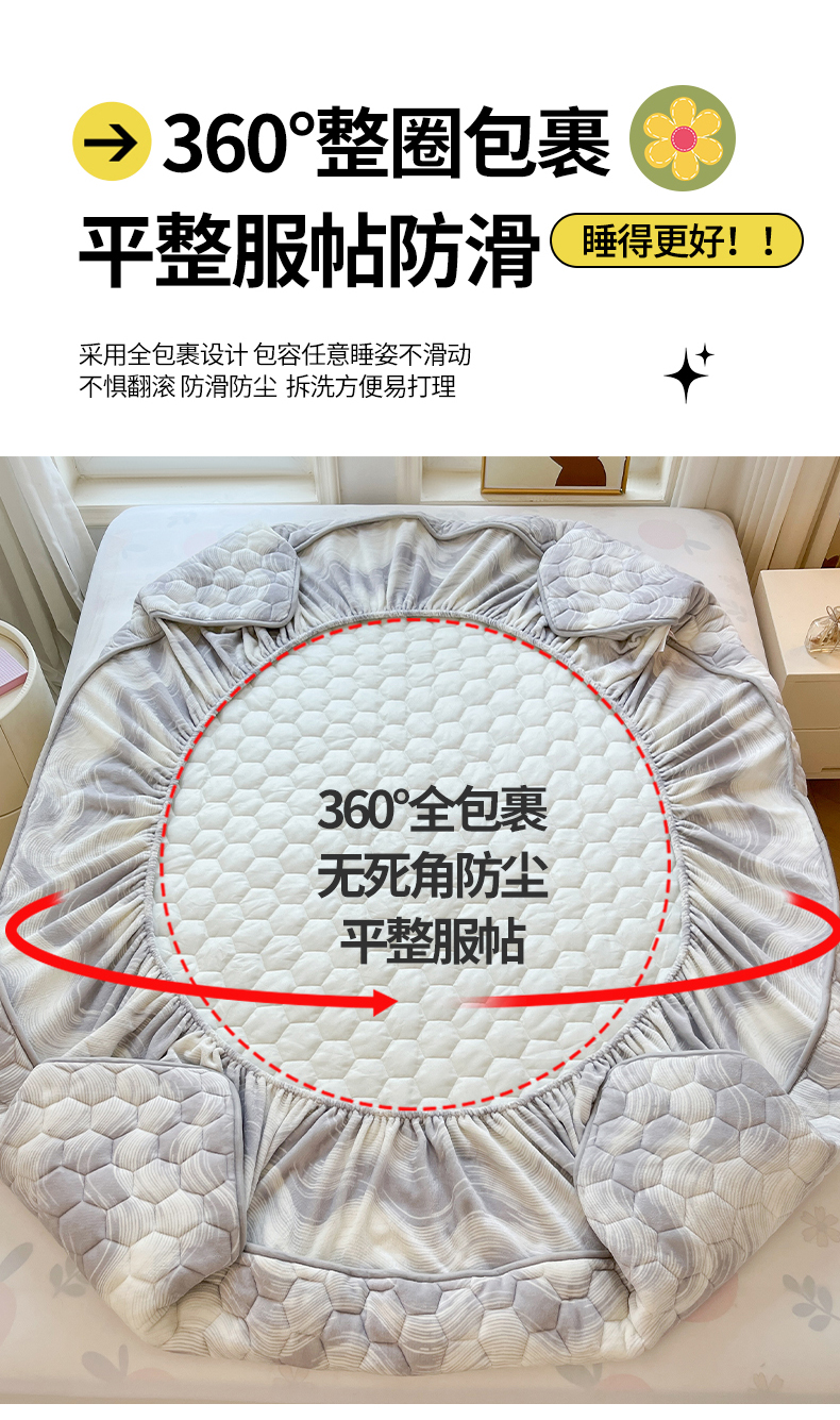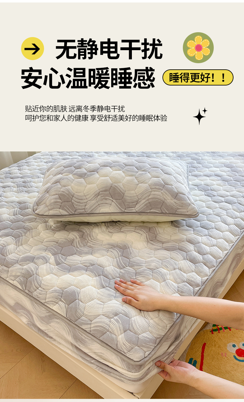 • 91家纺网 家纺一手货源 找家纺 伊人坊 2024新款牛奶绒印花大豆夹棉床笠 新潮海浪