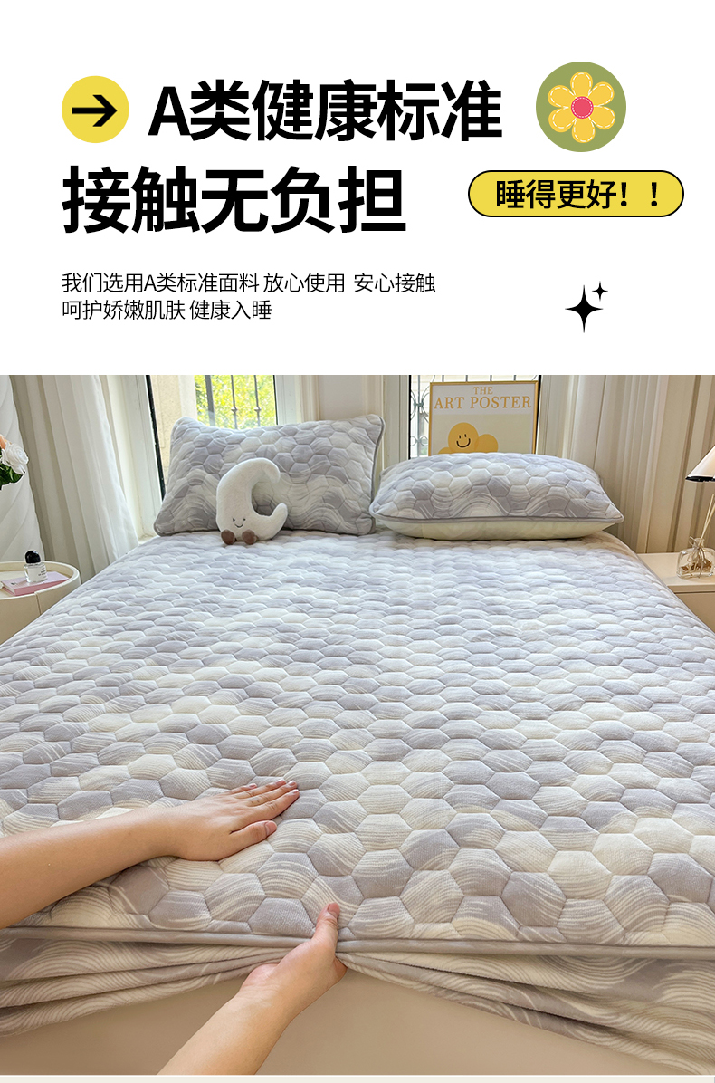 (总)伊人坊 2025新款A类全棉纯棉100s夹棉床笠,砂糖粉,星辰灰