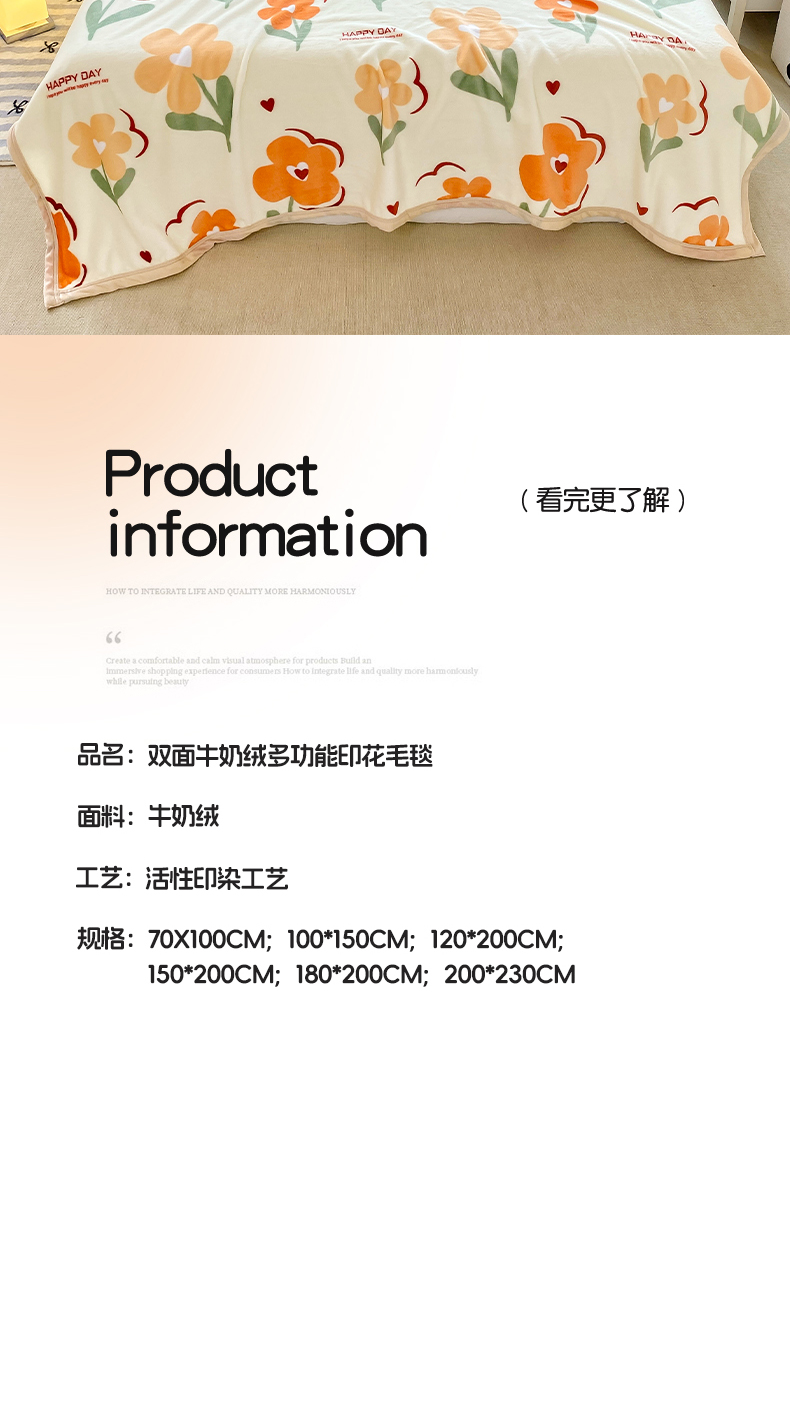 商品名称:楠沐家纺 2025新款双面牛奶绒多功能印花毛毯 郁金香