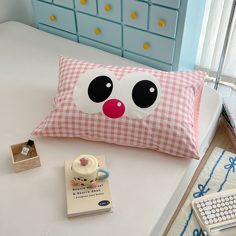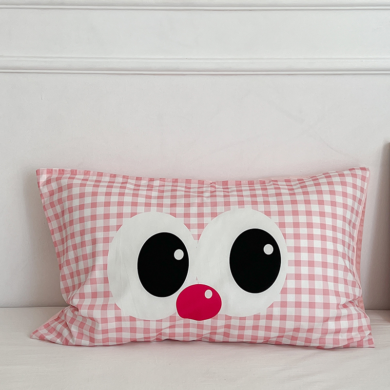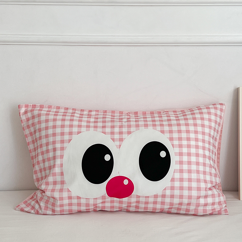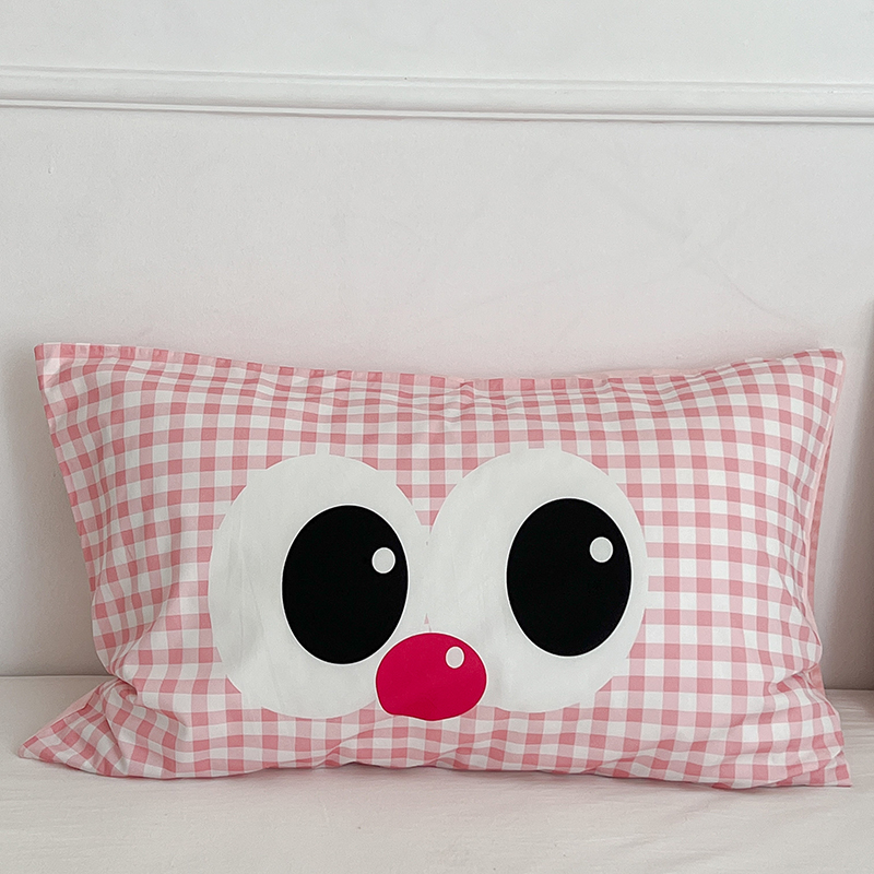 昔可家纺 2024新款数码印花单品枕套系列-卡通系列 粉格大眼仔