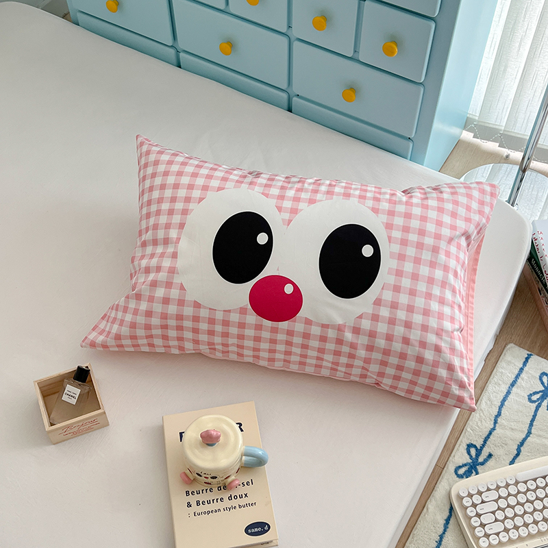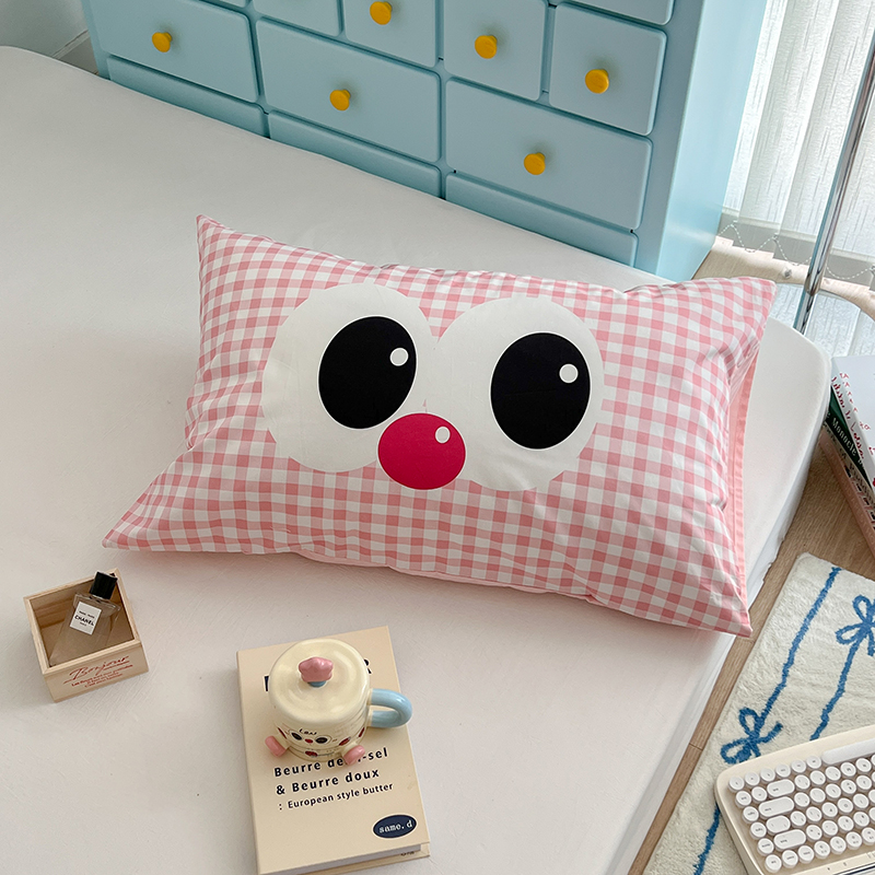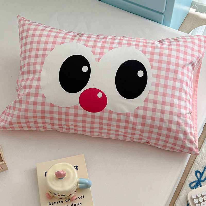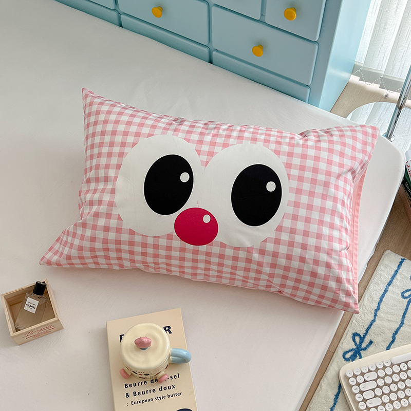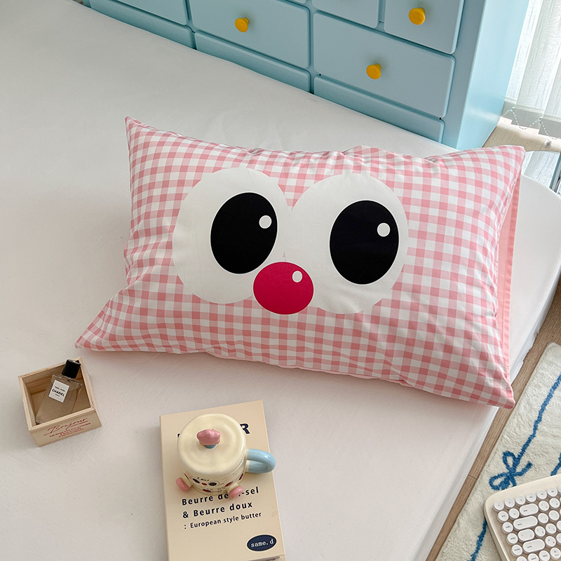 商品名称:昔可家纺 2024新款数码印花单品枕套系列-卡通系列 粉格大眼仔