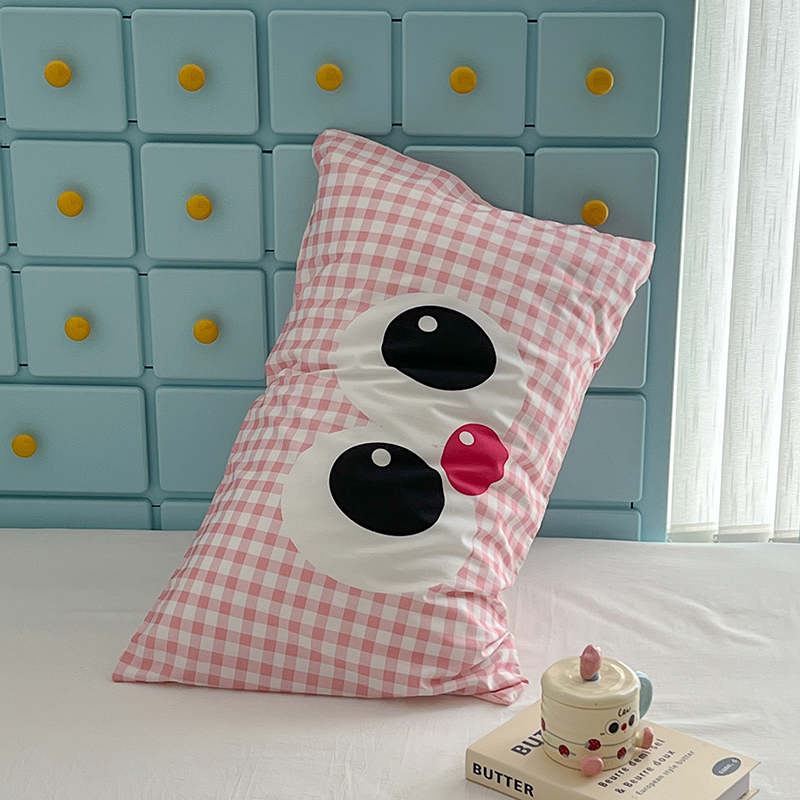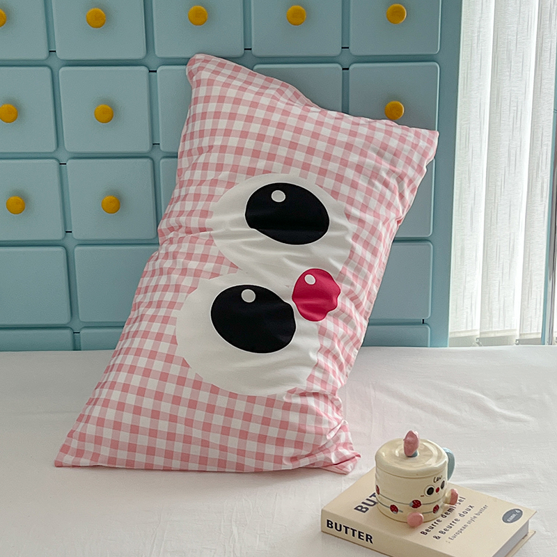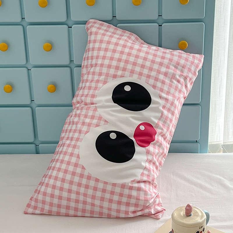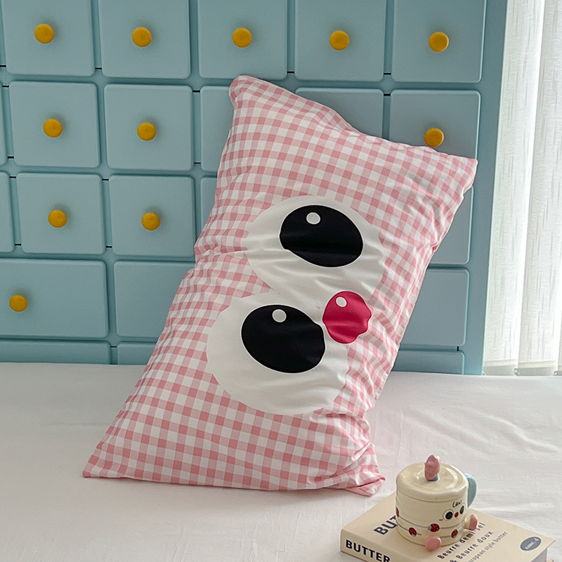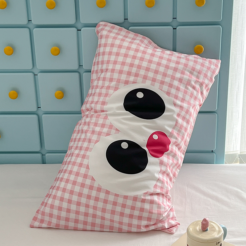 商品名称:昔可家纺 2024新款数码印花单品枕套系列-卡通系列 粉格大眼仔
