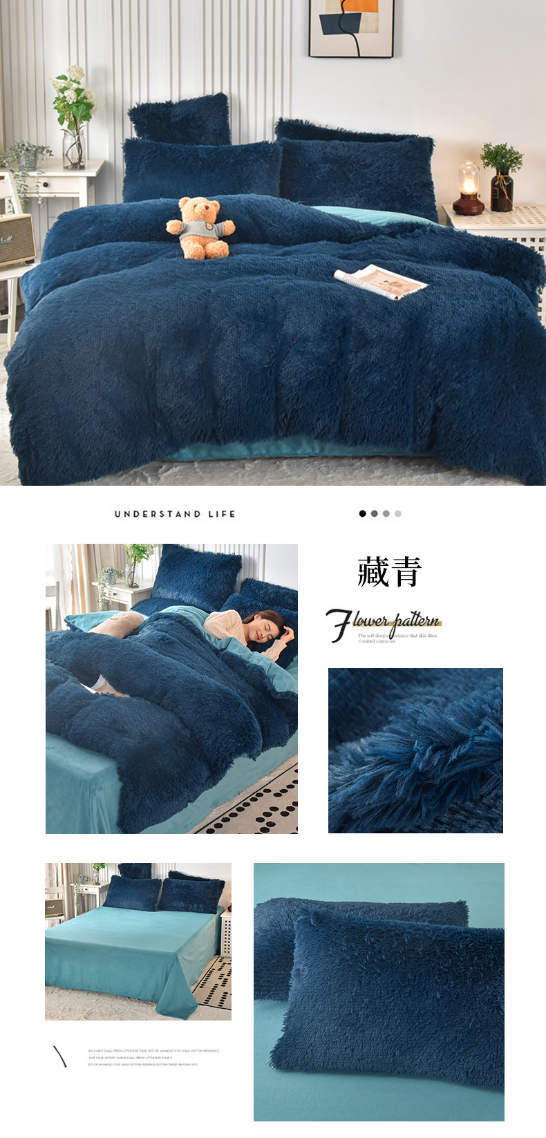 鑫喜莱 2024新款长毛绒四件套 藏青